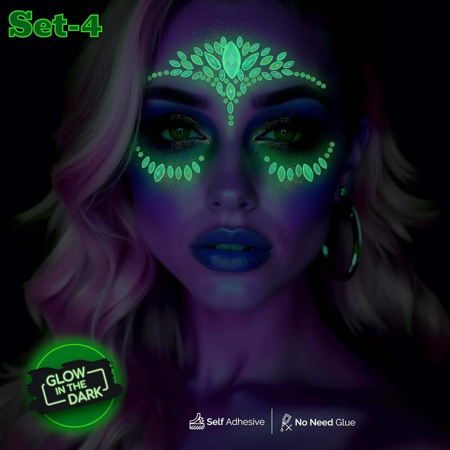 Crafted from high-quality supplies, these crystals adhere securely to your pores and skin whereas making certain consolation all through the night time. Their glow-in-the-dark function elevates your look, permitting you to shine brilliant in low-light environments, whether or not on the dance ground or at a themed occasion.