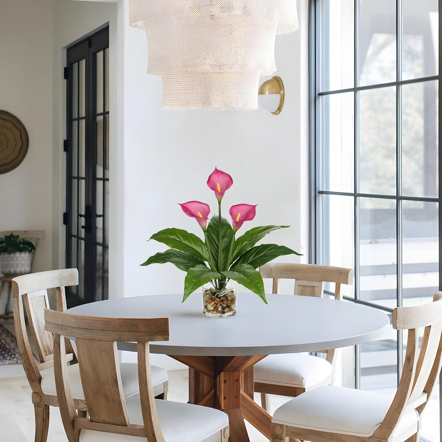 [Faux Flowers in Vase] -Our synthetic calla lily are trendy and chic, there has 3 lifelike flower branches, eye-catching 7 totally inexperienced leaves and actual cobblestone. These actual contact synthetic flowers for adornment can carry inexperienced life and freshness to your residing house