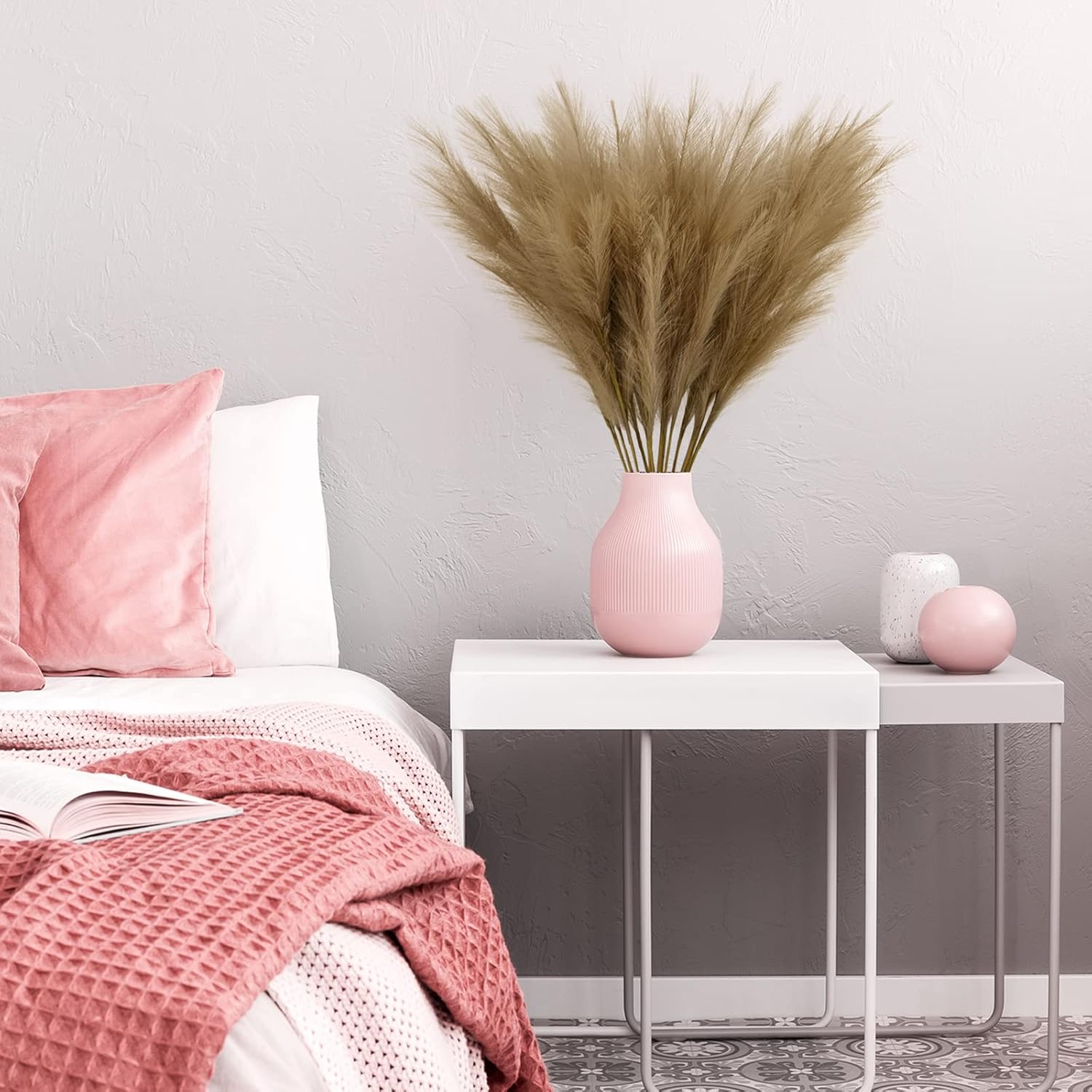 【Materials】: Feathers are fabricated from high-quality silk, whereas stems are wrapped in paper by adjustable metallic wires, presenting a pure look of pampas grass. The within of the stem is provided with adjustable metallic wire, you may bend the stems to suit inside a smaller vase.