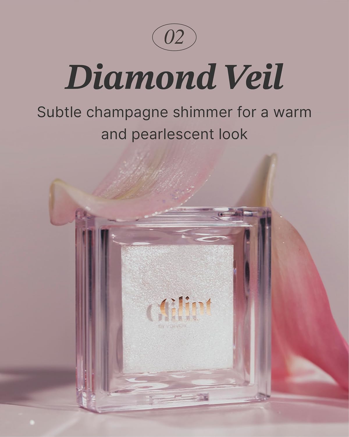 GLINT HIGHLIGHTER, DIAMOND VEIL (2.3g/0.08oz) – Illuminate your complexion with Glint Dewy Highlighter, providing a luminous glow paying homage to flowing mild. Infused with delicate micro-pearls, it creates a classy and pure radiance.