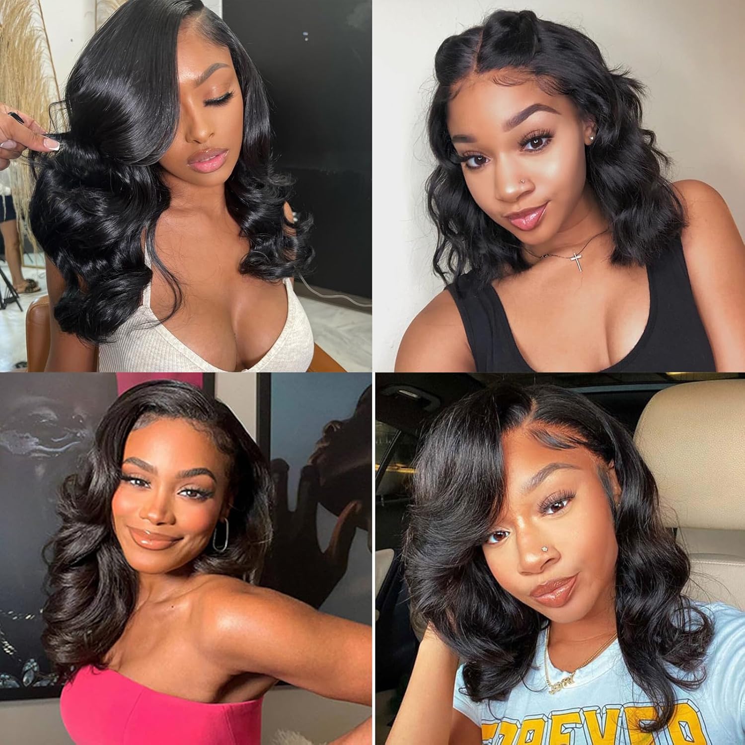 Physique wave bob wig human hair lace particulars: pre plucked with pure hairline. no shedding, tangle free, no scent, might be dyed, bleached, and restyled. no want to chop the lace, save your time, change your coiffure in minutes, simply put on to go!
