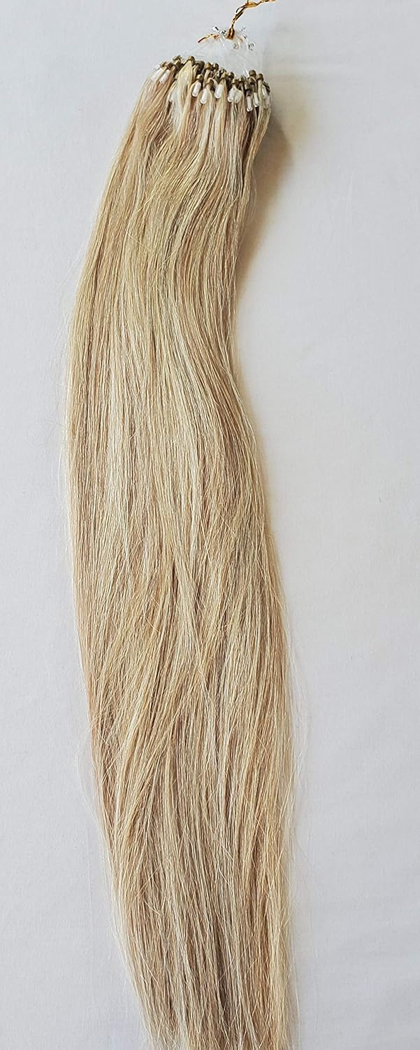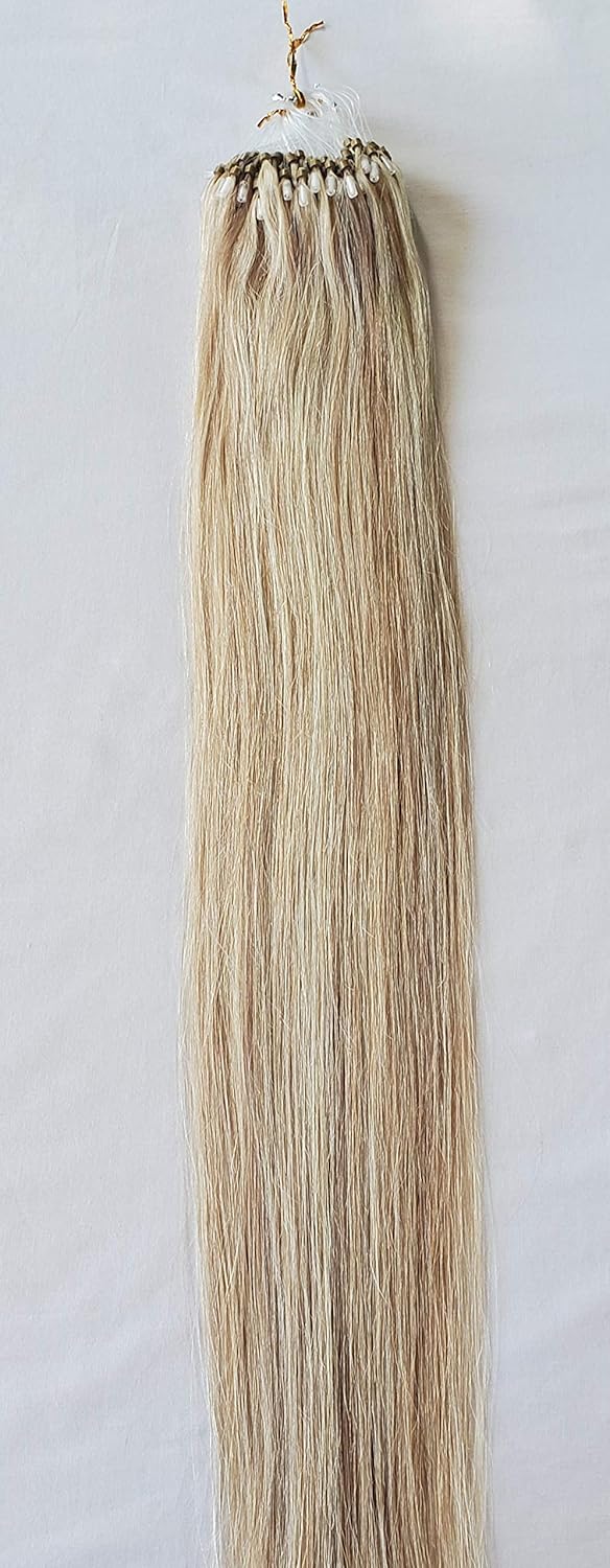 18″ 100 grams,100 strands,Micro Loop Rings Beads Tipped Human Hair Extensions #18/613 Darkish Blonde with Platinum Blonde
