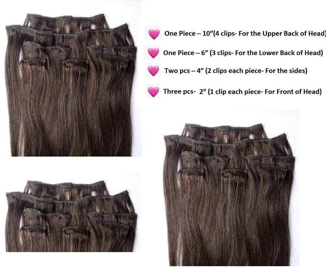 One pcs – 10″(4 clips- For the Higher Again of Head) One pcs – 6″ (3 clips- For the Decrease Again of Head) Two pcs – 4″ (2 clips every piece- For the perimeters) Three pcs-2″ (1 clip every piece- For Entrance of Head)