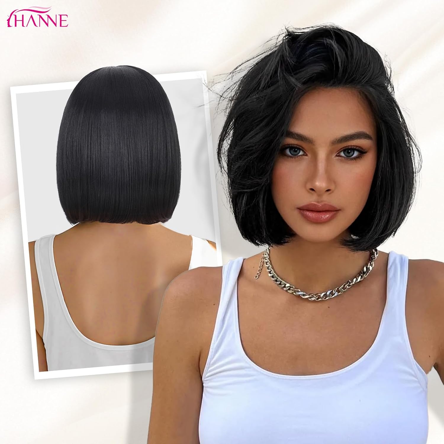 HANNE SHORT BOB WIG NATURAL BLACK SHOULDER LENGTH STRAIGHT BOB WIG SIDE PART SHORT HAIR WIG FOR WOMEN BLACK BOB WIGS FOR DAILY USE