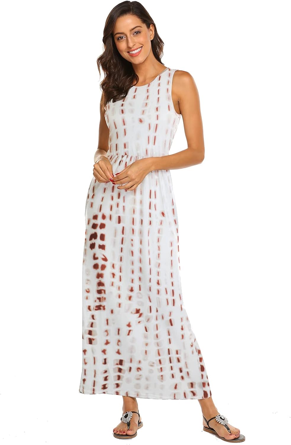 Sleeveless Striped Lengthy Maxi Gown with Pockets