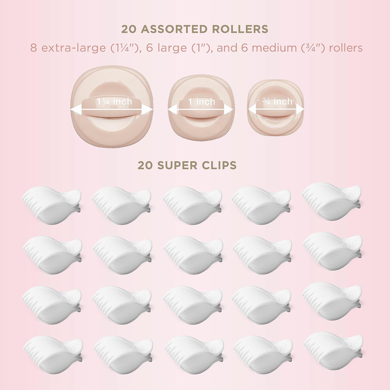 Full Set: Contains 20 flocked rollers in assorted sizes; 8- 1 1/4in xl, 6- 1in giant 1in and 6- 3/4in medium rollers. This set contains 20 heated clips, 12 clips match on the heater without delay, after securing a clip in your hair, place a brand new clip on the heater.