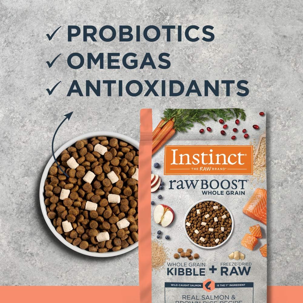 WHOLE GRAIN DOG FOOD WITH FREEZE DRIED RAW : Intuition Uncooked Increase pure dry pet food combines excessive protein, entire grain kibble with all pure bites of freeze dried uncooked beef. Wild caught salmon is the #1 ingredient.