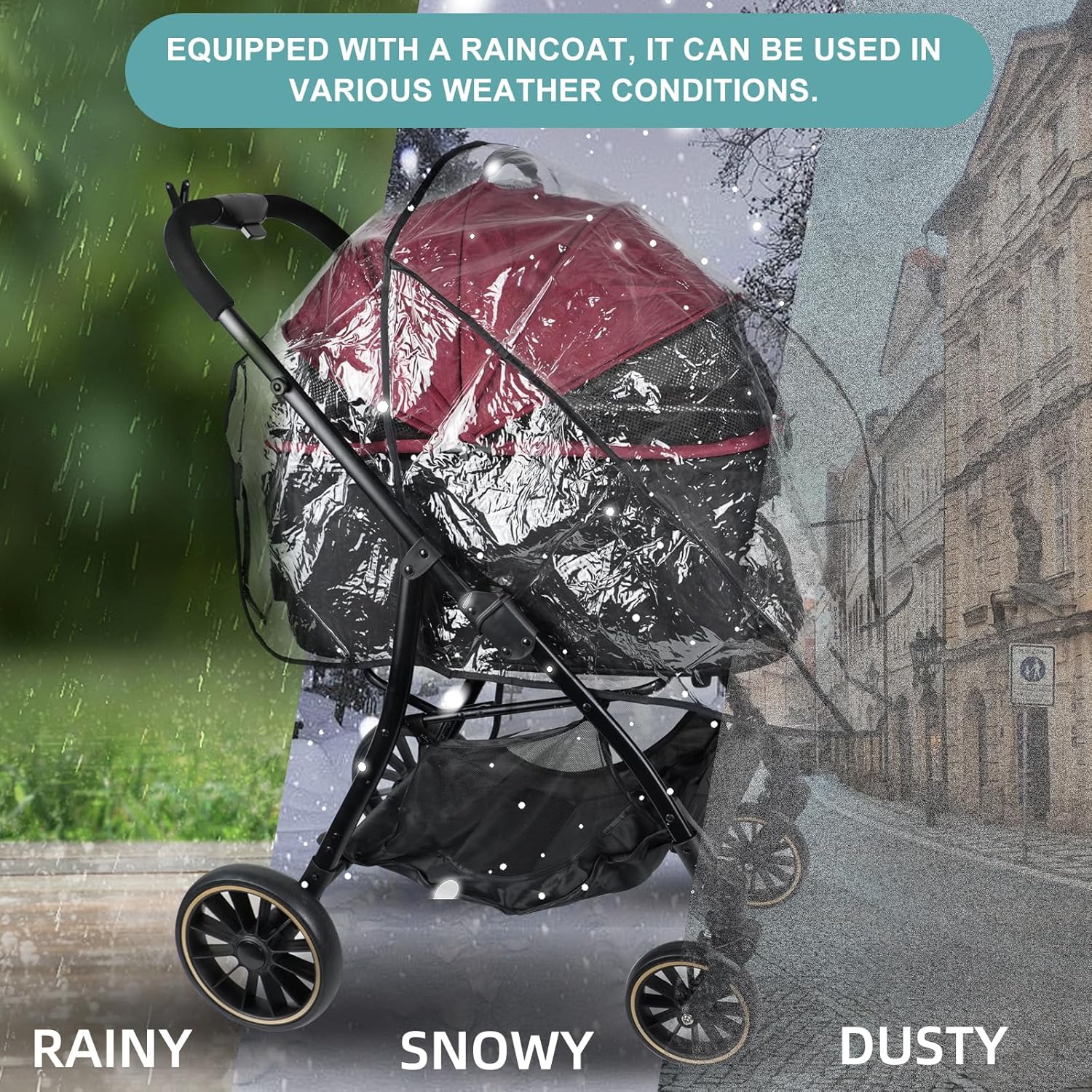 【🛡️ ALL-TERRAIN WHEELS & RAIN PROTECTION】 Sturdy 7″ or 10″ shock-absorbing wheels deal with tough paths, whereas the included waterproof raincoat retains pets dry in any climate.