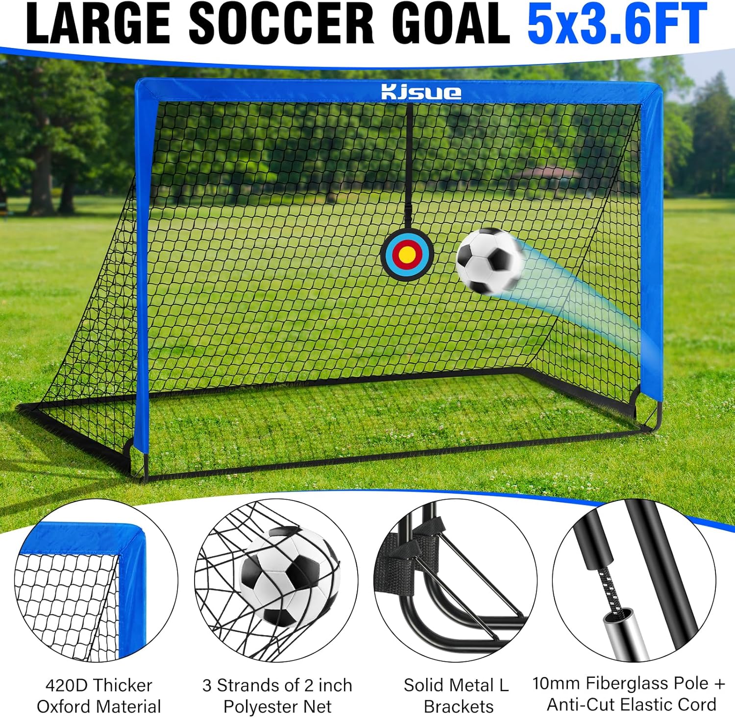 High quality & Sturdiness Above All Else – 2 set of 5′ x 3.6′ transportable soccer targets each made from sturdy Oxford fabric and 9.5MM FIBERGLASS POLES with good toughness and put on resistance. The std measurement 3 soccer ball made from sturdy TPU, designed to withstand abrasion and last more. Can help children to kick the ball into it moderately exhausting! Nice for Coaching and Funning!