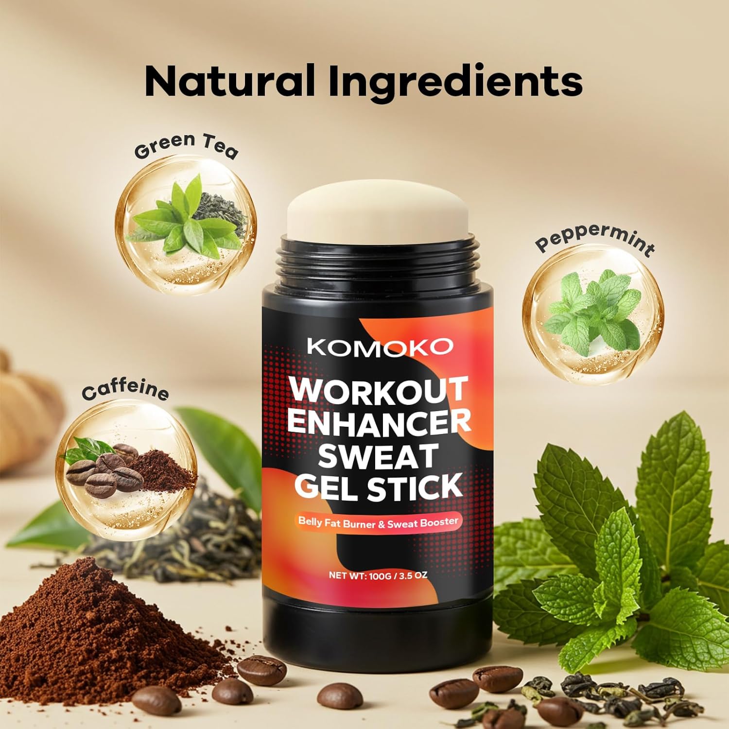 Komoko Fat Burning Sweat Gel Stick (3.5 oz), Workout Enhancer Roll-On Gel Stick, Sweat Cream for Stomach Fat, Belly Fat Burner & Waist Trainer Gel for Women & Men