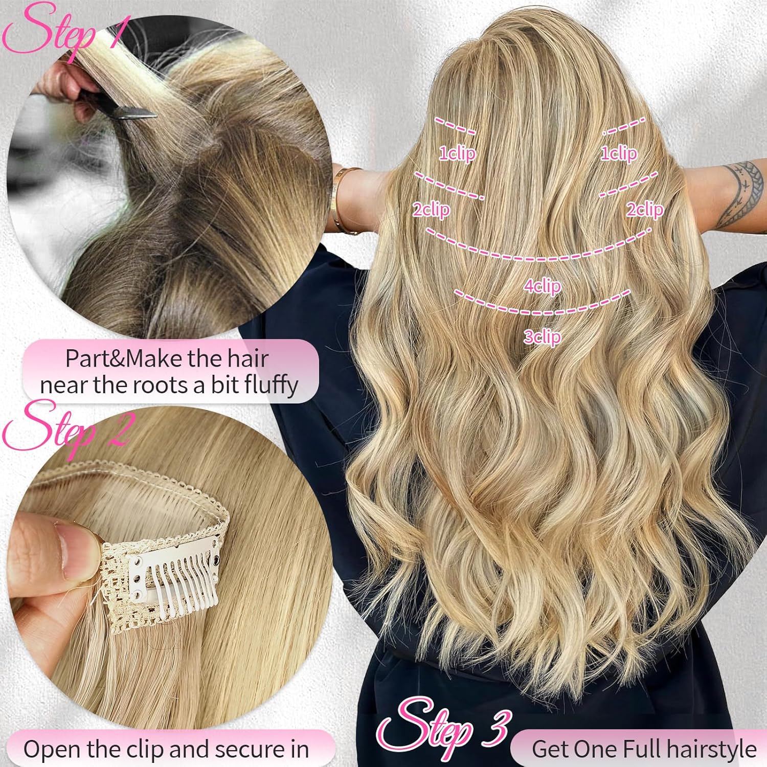 【MATERRIAL&ADVANTAGE】 Our clip in hair extensions are made of top of the range, warmth resistant artificial supplies, much like actual human hair. They’re comfortable, clean, and odorless, mixing nicely together with your pure hair for a pure look.