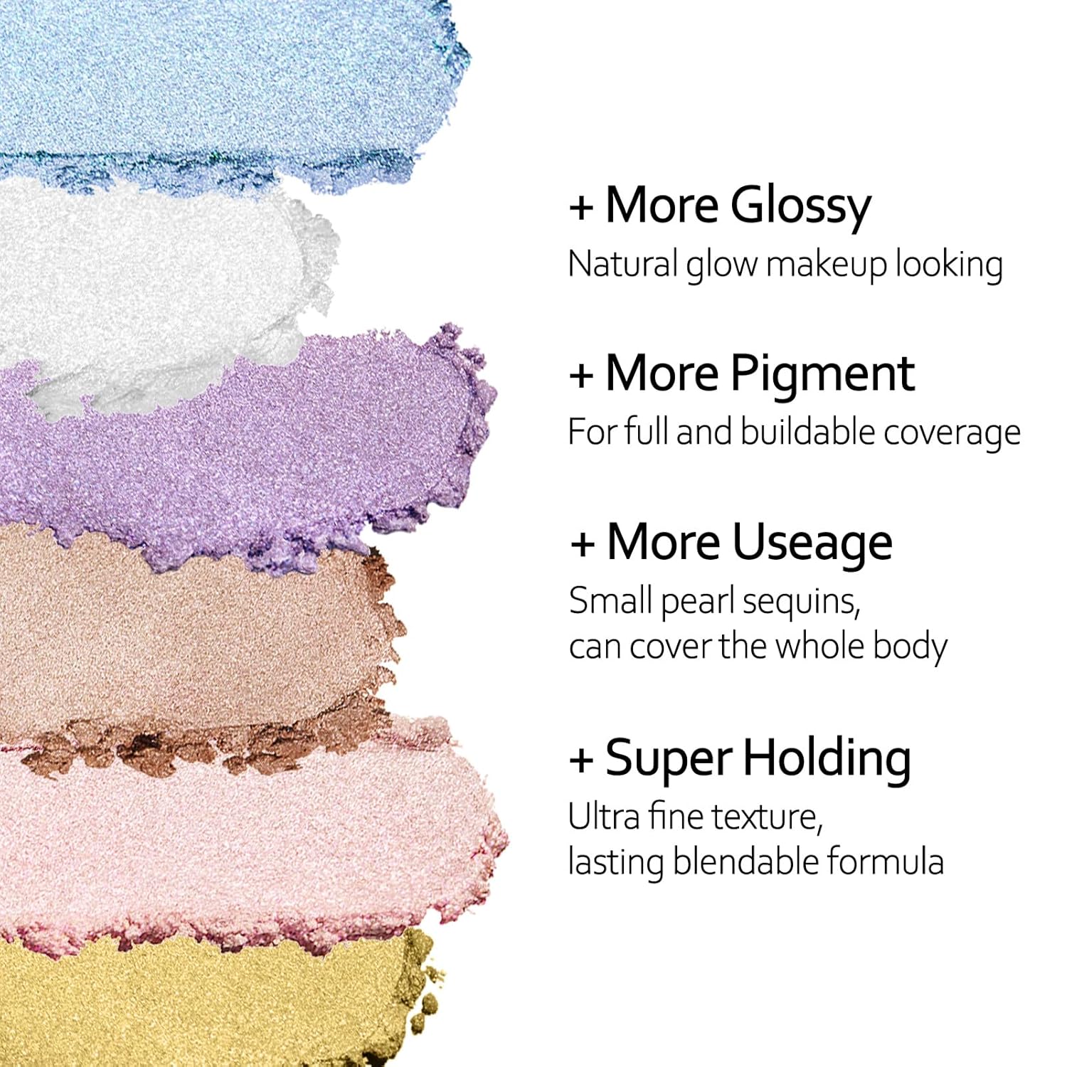 【Multi Tasking Highlighter Powder】Small pearl sequins, can cowl the entire physique. With a delicate sweep, your cheeks, arms, legs, collarbones, together with hair, immediately sparkle. Pure glowing end, appropriate for stage, get together and live performance a number of make-up. Simple and handy to get a shiny pure gloss look.