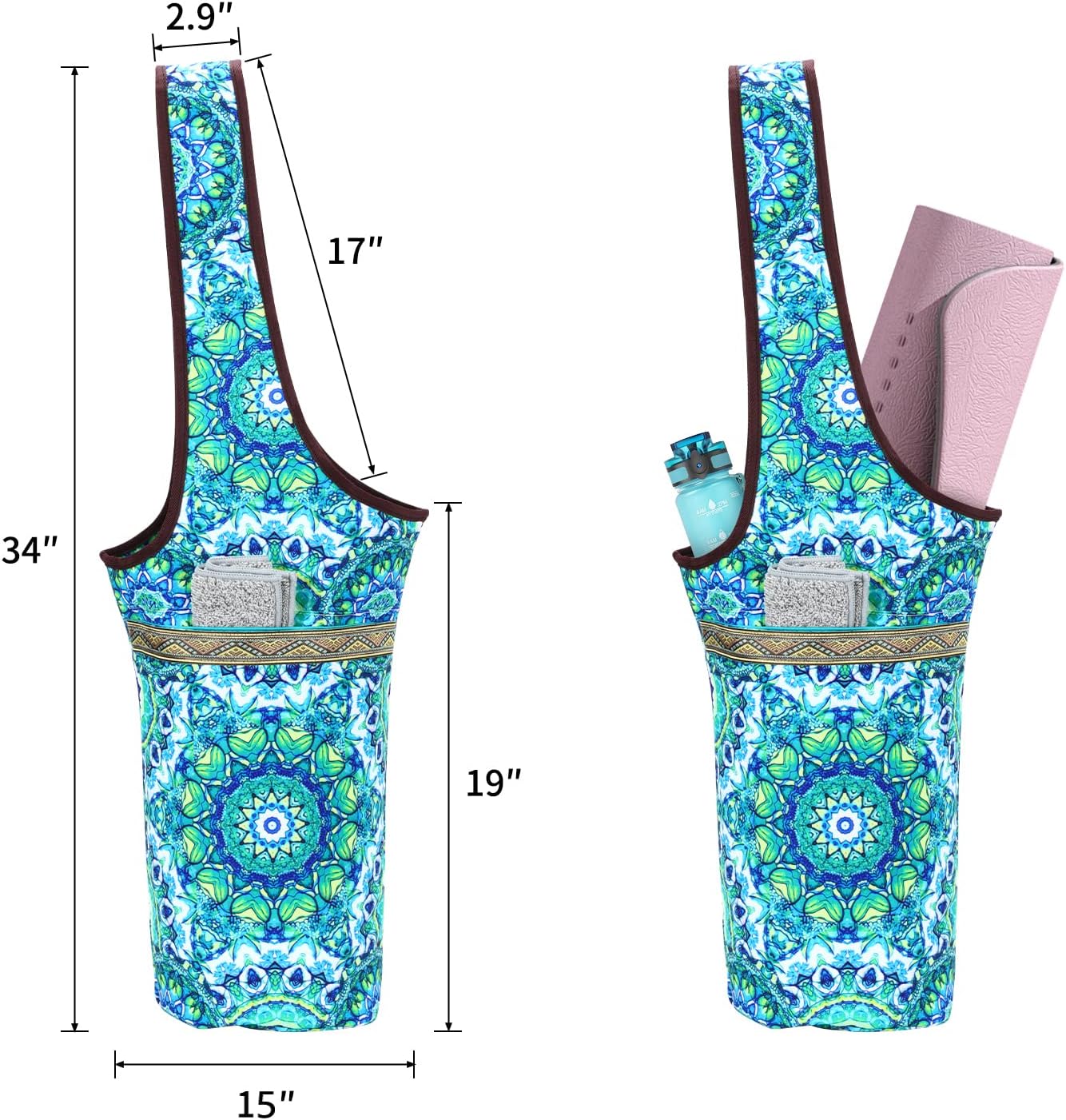 3-Pocket Design: yoga mat bag sling tote measures 34″ in size and seven.8″ in width, permitting you to retailer your yoga mat, yoga brick, and different yoga gear and equipment. A big aspect pocket can maintain water bottles, yoga mat towels, and even garments to alter into after exercising. There’s additionally a small zippered pocket contained in the bag to retailer objects like headphones, keys, and cell telephones.