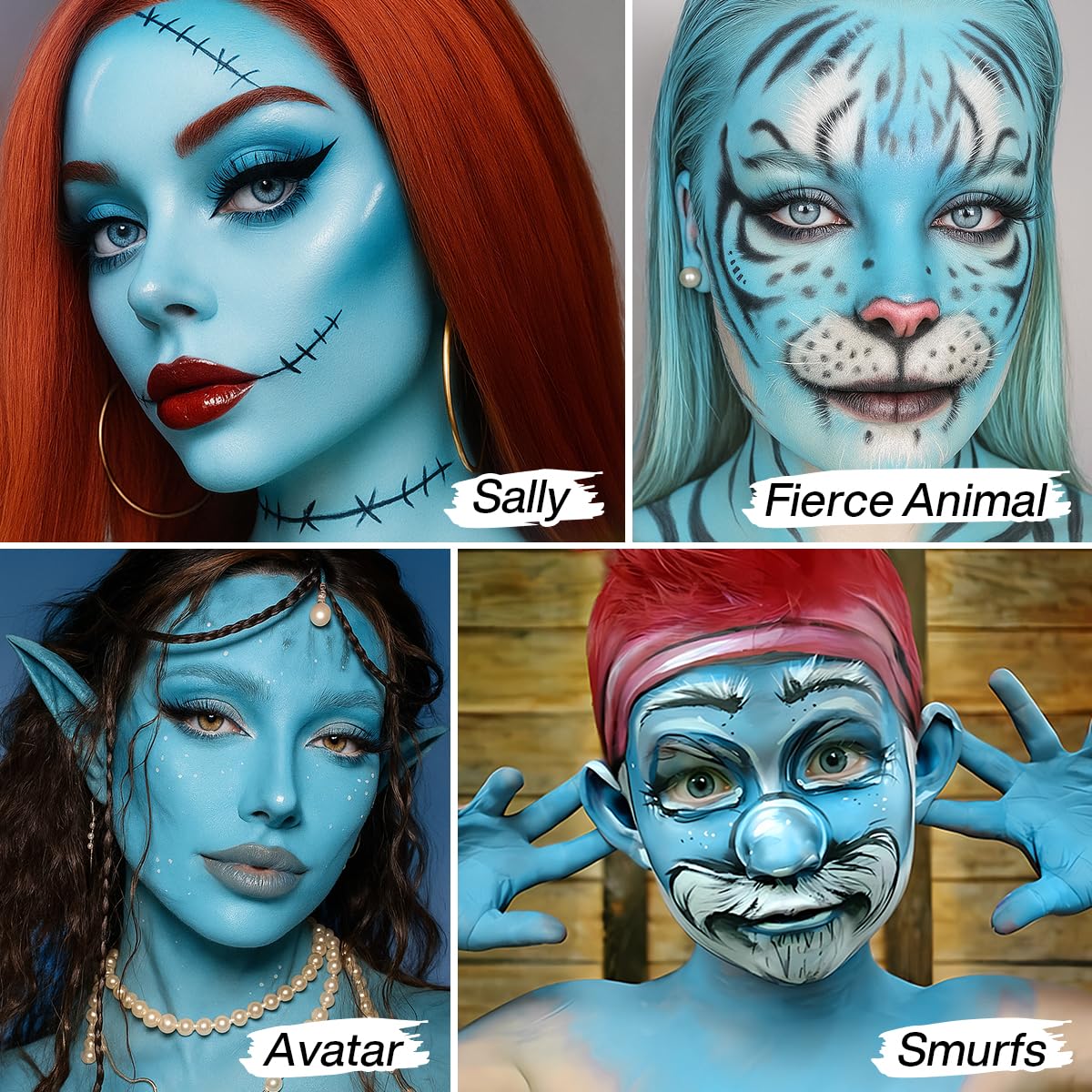 🦄Extensively Use: The sunshine blue face physique paint make-up basis is appropriate for every kind of fancy make-up, comparable to cranium make-up, smurf cosplay make-up, traditional corpse bride make-up, avatar costume make-up, sally face make-up and extra, an important blue coloration for a lot of different Halloween make-up seems.