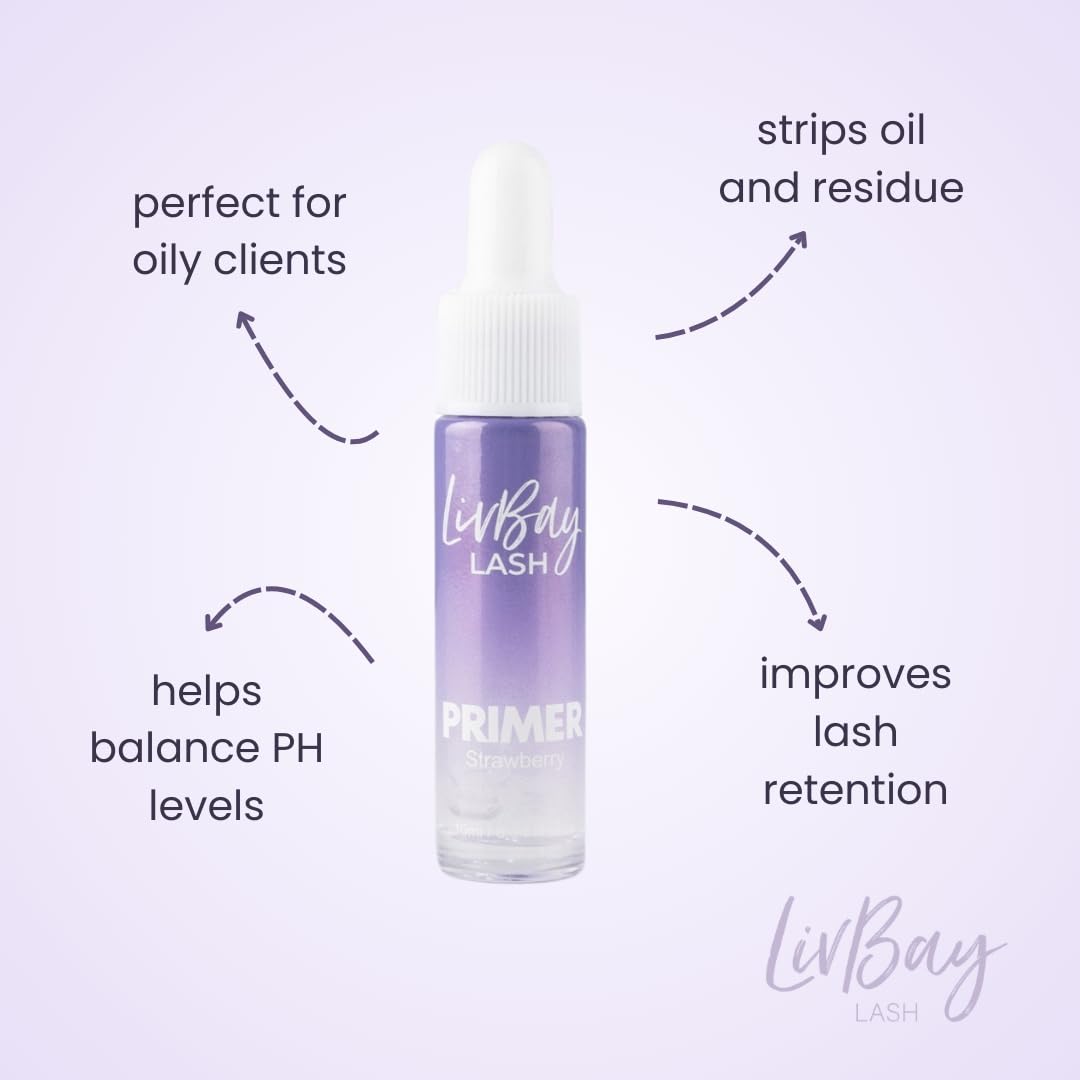 LIVBAY Strawberry Primer | Lash Extension Primer – Removes Oils & Build Up for Longer Eyelash Extension Retention (10ml) 1.0 Count