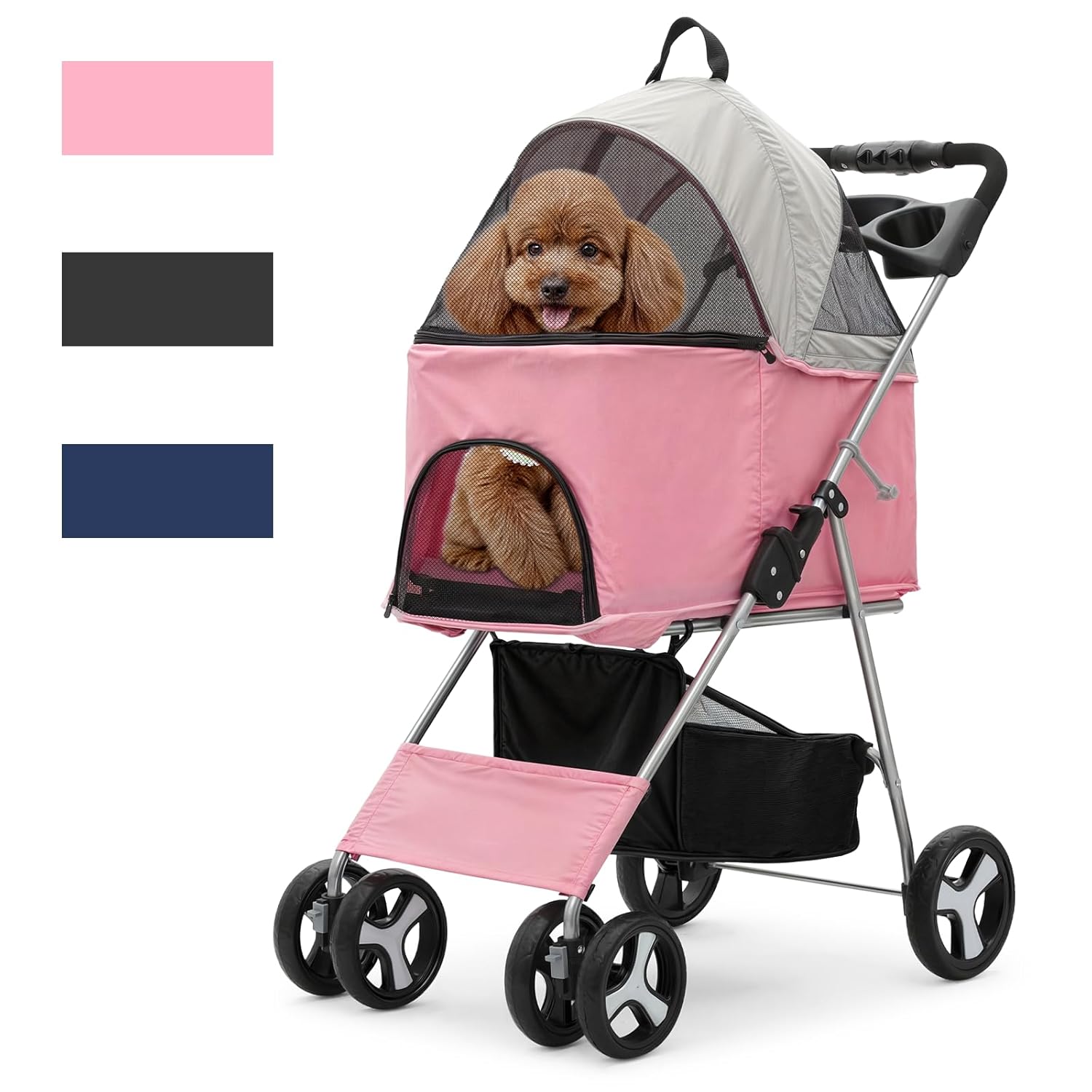 Handy Storage for Necessities: Outfitted with a built-in cup holder and a spacious undercarriage storage basket, this stroller means that you can carry pet necessities, private belongings, and refreshments with ease, protecting every part organized throughout your journey