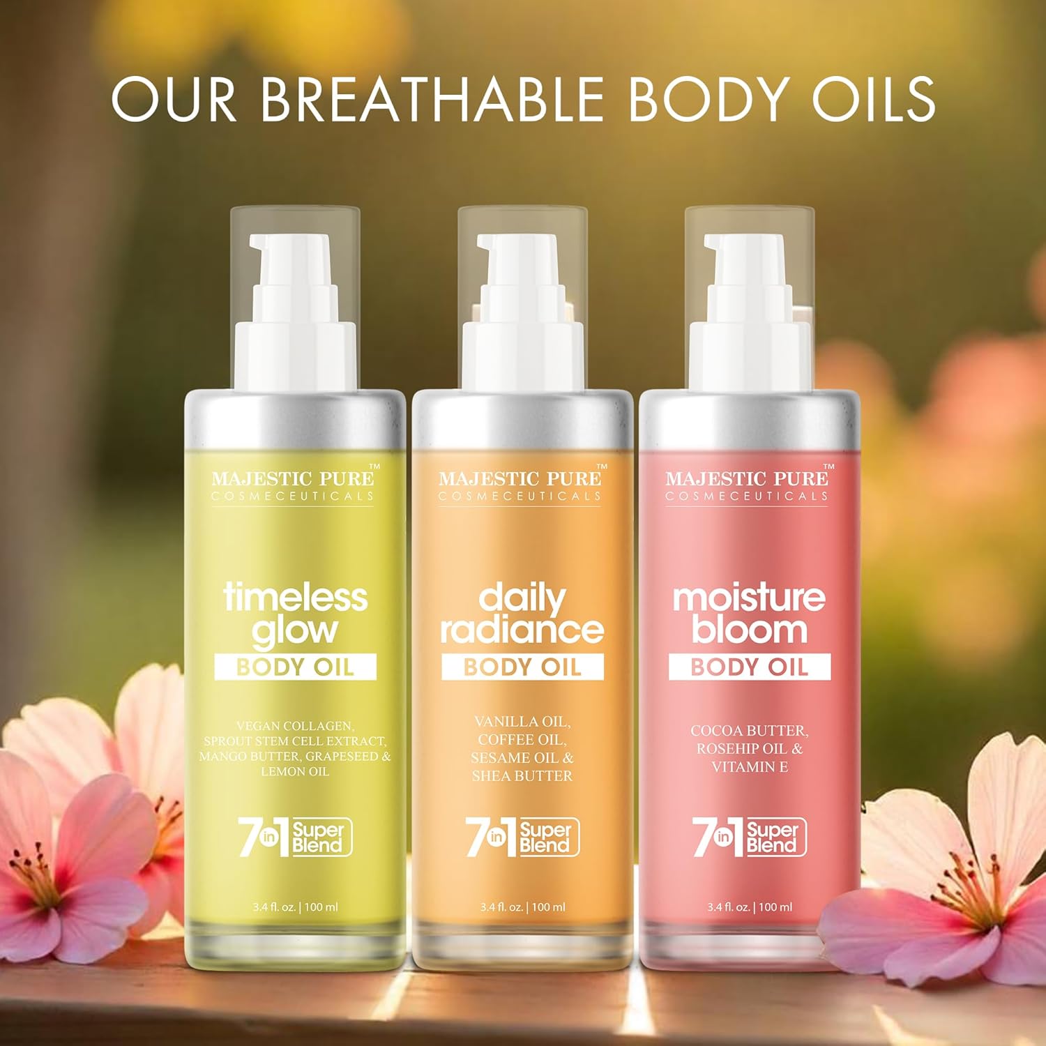 Locks in Hydration: The mix of shea Butter and Sesame Oil in Each day Radiance Physique Oil varieties a protecting barrier, locking in moisture to maintain your pores and skin hydrated all through the day. The long-lasting moisture leaves your pores and skin smooth, easy, and supple