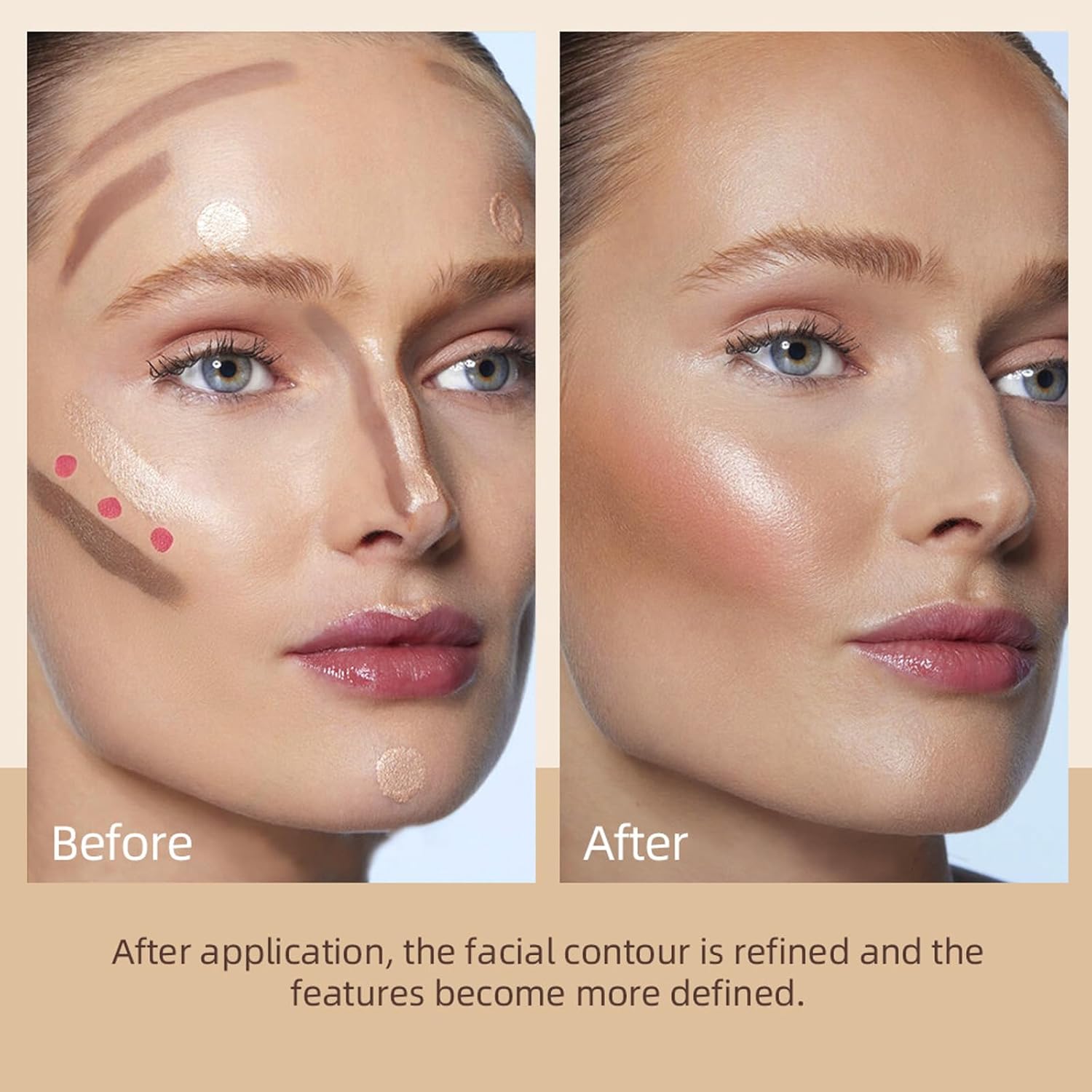 PORTABLE TRIO SET:Consists of 1 liquid highlighter,1 liquid blush,1 liquid contour stick,Meet your every day make-up wants with MEICOLY face shaping make-up set.Light-weight journey dimension,handy so that you can do make-up at any time