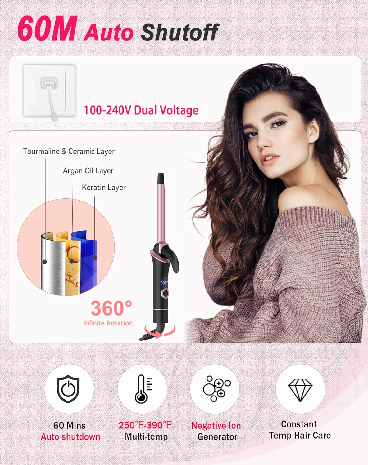 💝【Twin Voltage Hair Curling Wand with 60 Min Auto-off】: With common twin voltage(110V-240V) compatibility, offering skilled styling on the go, this twin voltage curling iron is right for worldwide journey. The 60-min auto shut-off characteristic ensures energy-saving and extends the lifespan of the journey curling iron, providing you with peace of thoughts wherever you’re.