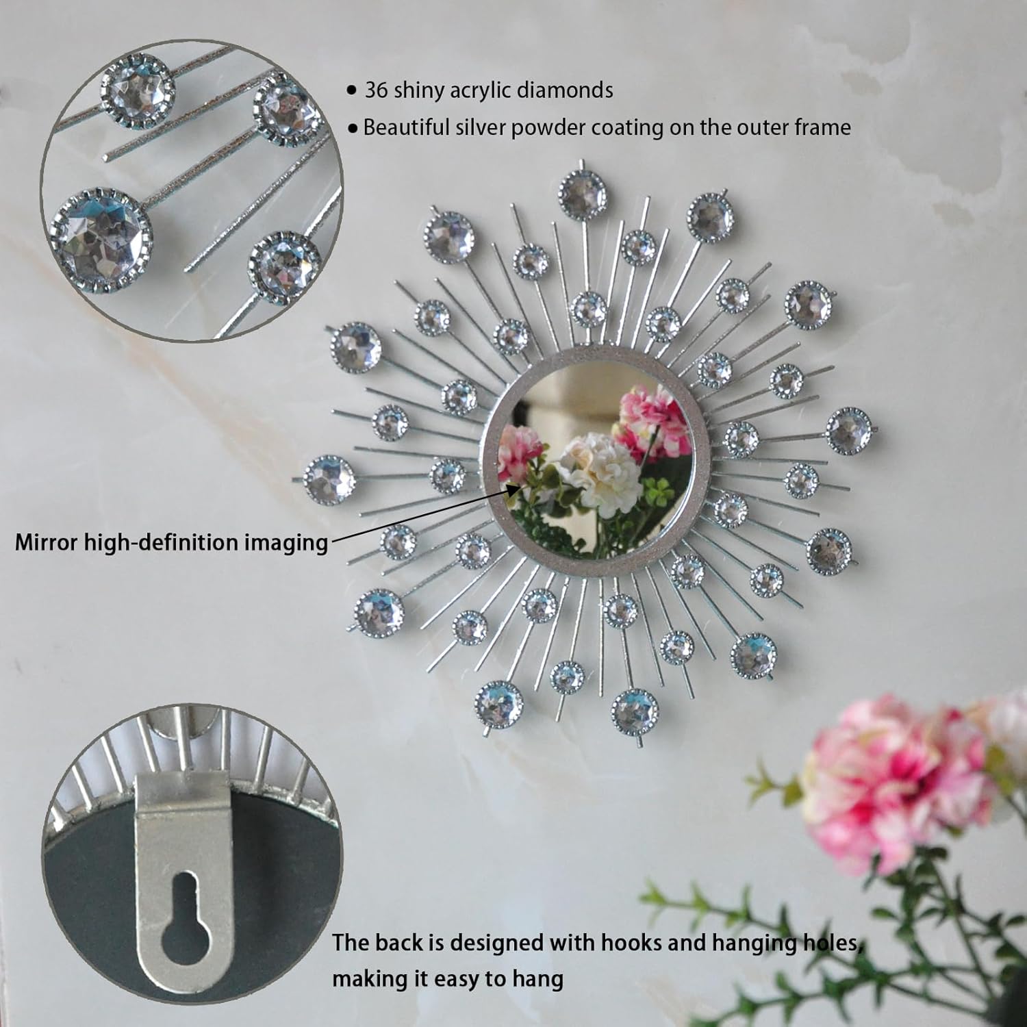 The silver ornamental wall mirror has hooks on the again and is light-weight, making it straightforward to hold in areas that require ornament.