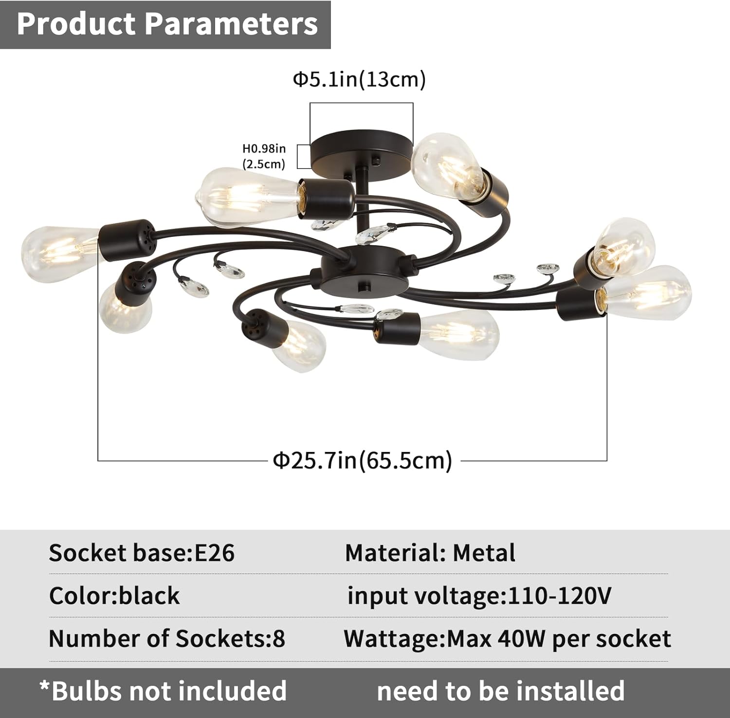 Bulb Requirement: This industrial chandelier is suitable with E26 base bulbs (not included). We advocate utilizing bulbs with a most energy of 40W for higher lighting impact. We advocate you select LED or CFL bulbs to save lots of power and cash