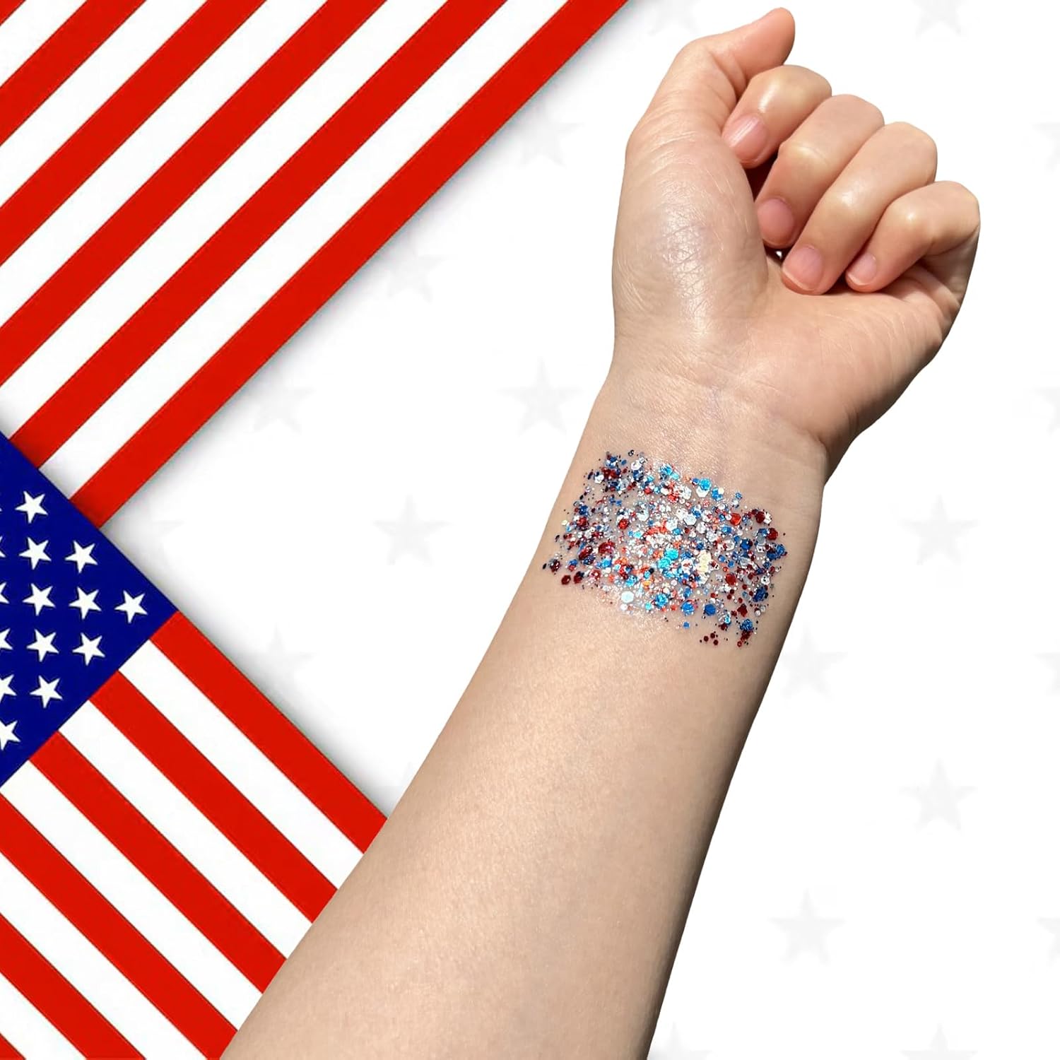 Use it for underneath eye tears,cheekbone highlights,glitter braids,glitter roots,collarbones,and shoulders for pageant make-up for 4th of July,events,concert events,picture ops,staff occasions,Halloween costume or faculty spirit days.Add a daring,festive contact to any outfit for a real patriotic glow!