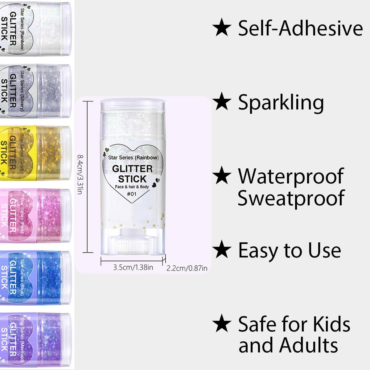 Mysense Rainbow Body Glitter Stick,Face Hair Glitter Christmas Makeup,Sparkling Mermaid Sequins Chunky Glitter Face Paint,Singer Concert Outfit Festival Rave Accessories for Women and Kids