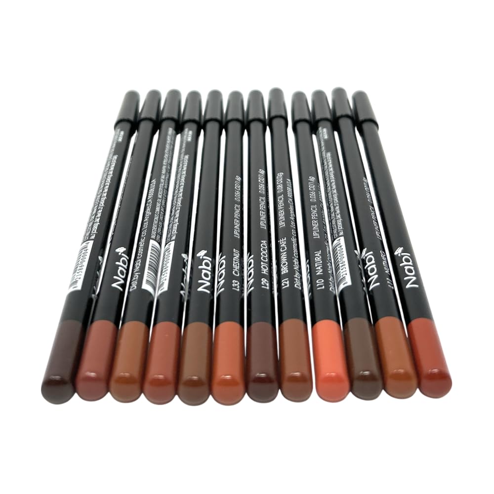 Nabi 12 Colors Wooden Lip Liner Pencil Set, High Pigmented Lip Makeup, Long-wearing, Deep and Rich in Color, 7.5 inches Long Pencil (Brown, 7.5)