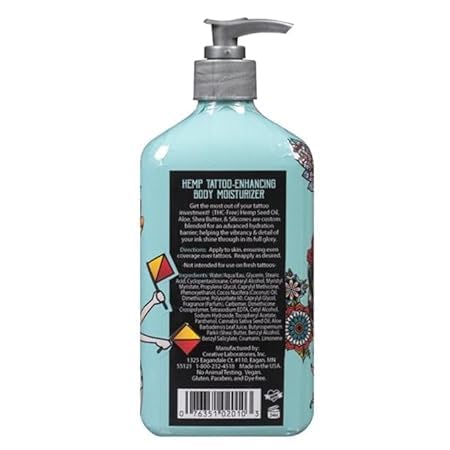 18 Fluid Ounce Bottle: This tattoo moisturizer is available in a 18 fluid ounce bottle with a handy pump dispenser for simple, mess-free utility.