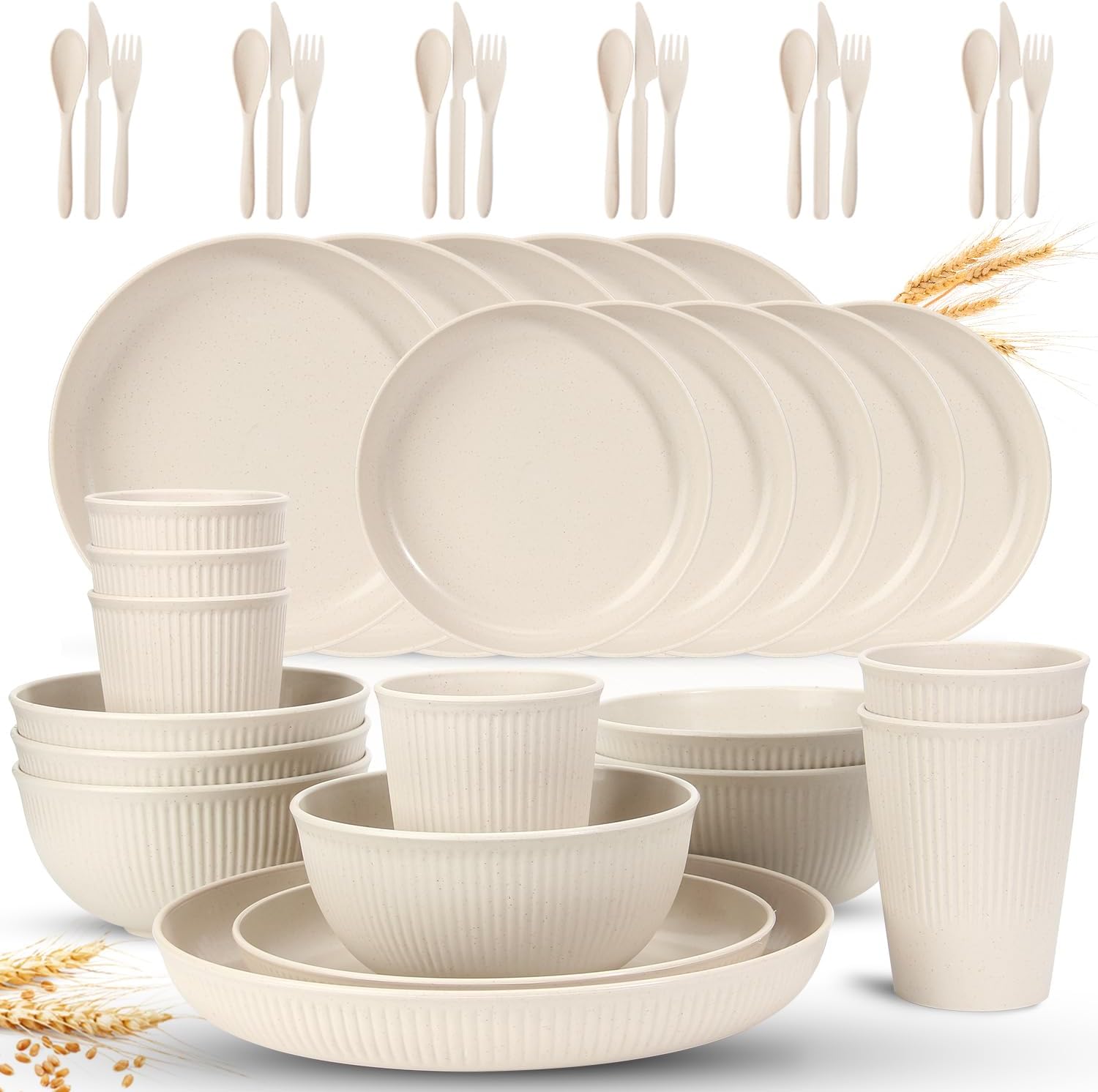VALUE PACK: You’re going to get wheat straw dinnerware units (6 x 10in giant plates, 6 x 8in center plates, 6 x cups, 6 x bowls, 6 x utensils units embody knife, fork and spoon), they’re sensible and trendy. With enough amount which is sufficient on your each day use.