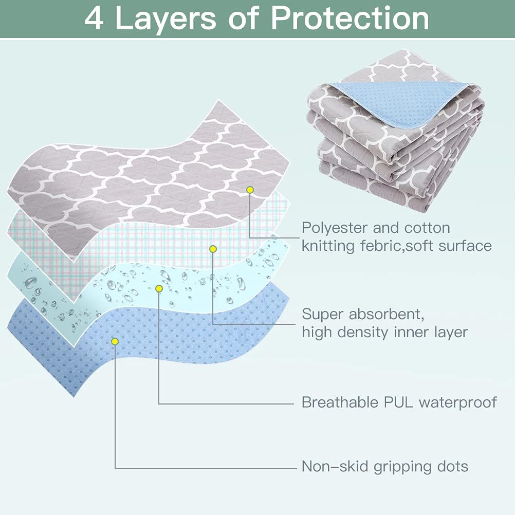 4-layer design: Our mats adopts a 4-layer design. The primary layer of polyester knitted material has a gentle floor.the second layer is tremendous absorbent,excessive density internal layer. The third layer is breathable and waterproof.The final layer are non-skid gripping dots.Maintaining your sheets and mattress dry and defending all evening whereas nonetheless being comfy.