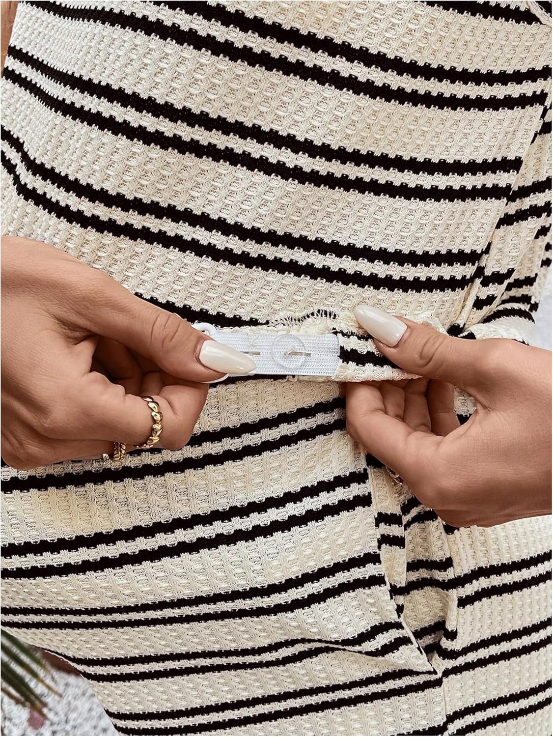 OYOANGLE Women’s Maternity Lounge Set Textured Striped Print Tee Top and Shorts Pregnancy Summer Outfits