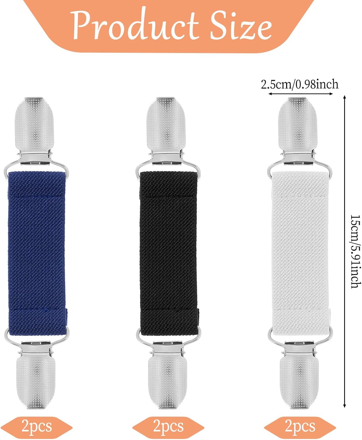 2. Pant clips are made of top quality stainless-steel and elastic band for lengthy lasting sturdiness, further lengthy adjustable dimension, suits most physique varieties.