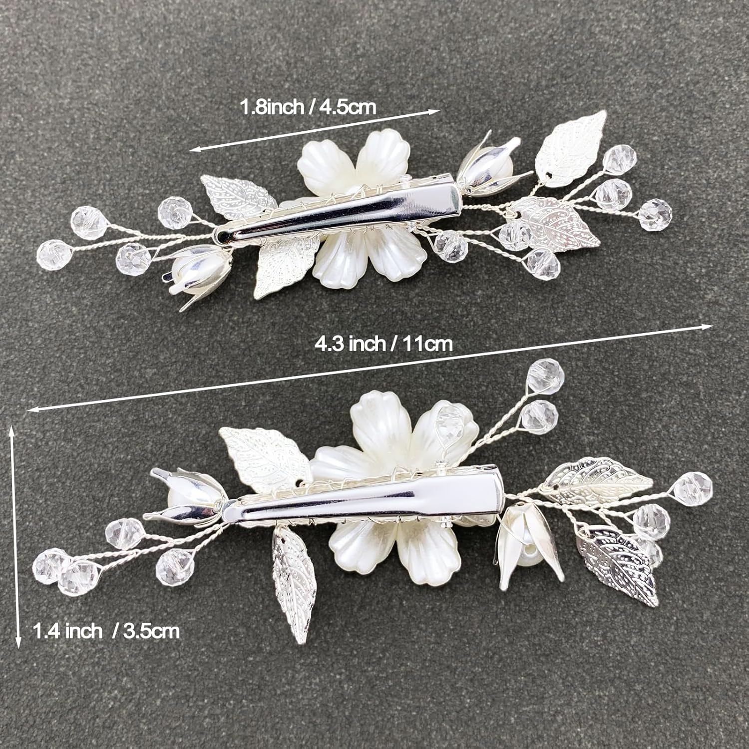 【Dimension: Every bridal pearl flower hairgrip is with measurement 4.3″ x 1.4″ / 11cm x 3.5cm (Size x Width), the size of the alligator clip is approx. 1.8″ / 4.5cm, can maintain within the hair firmly, free measurement for girls and ladies
