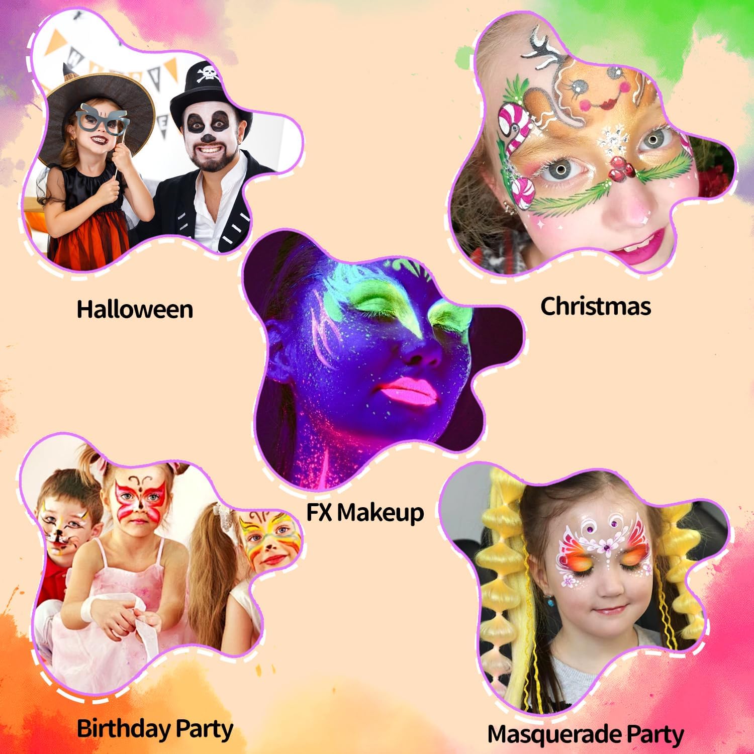 Secure and Superior High quality: Security all the time comes first. This facial portray system is pores and skin protected, non-toxic, and hypoallergenic. It makes use of robust pigment urgent know-how, straightforward to combine, clean and agency protection, no cracking, fading, or stains, fast drying, and comfortable pores and skin