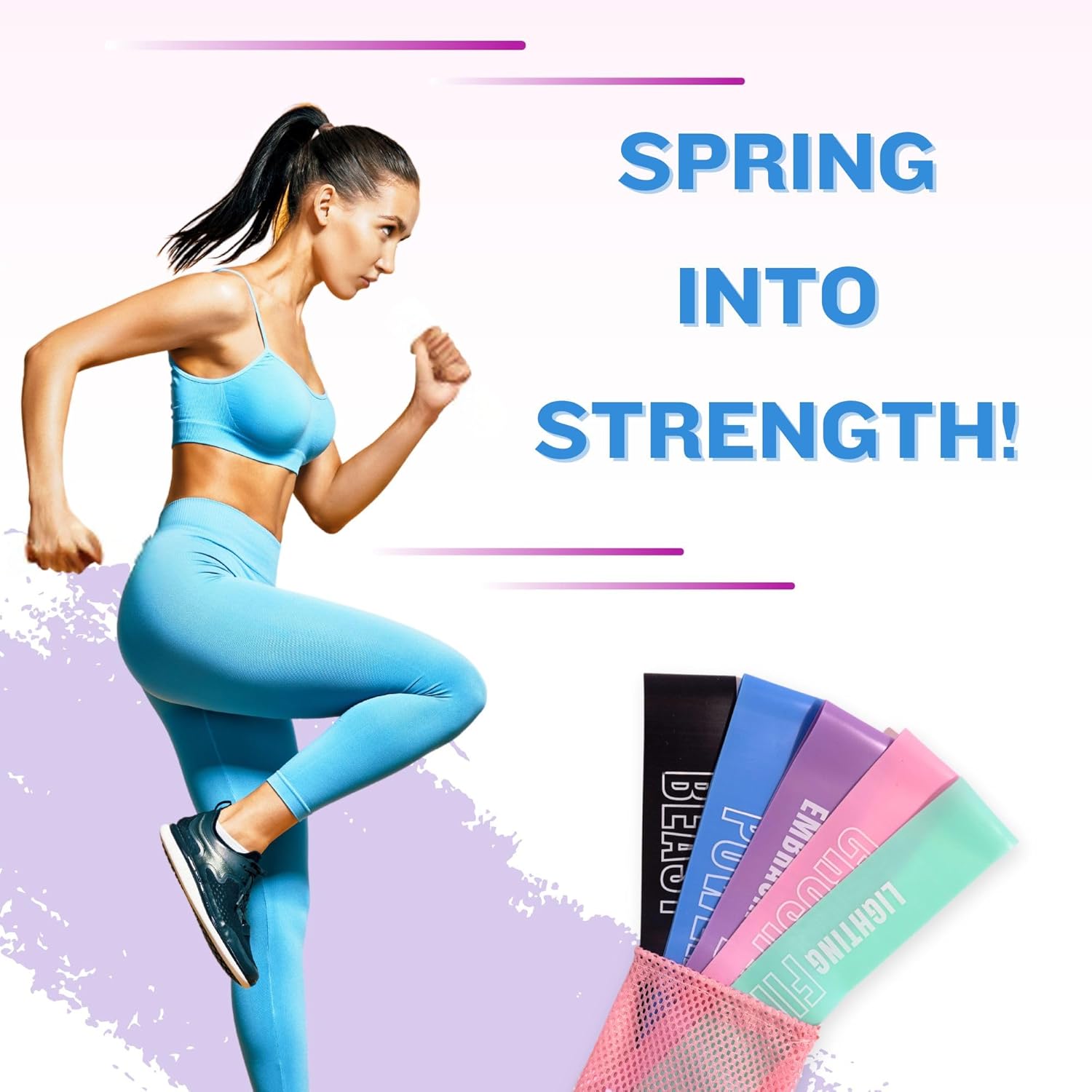 SIZE: Completely sized at 12×2 inches – The perfect stability between portability and performance. COLORS: Energizing Inexperienced, Radiant Pink, Dynamic Purple, Vivid Blue, & Commanding Black. INCLUDES: 5 premium resistance bands in various ranges + 1 trendy pink mesh carry bag. MATERIAL & TEXTURE: Excessive-quality, latex-free TPE with distinctive elasticity and a easy texture for a safe, comfy grip. RESISTANCE STRENGTH: X-Mild: 5-10 lbs. > Mild: 10-15 lbs. > Medium: 15-20 lbs. > Heavy: 20-25 lbs. > X-Heavy: 25-30 lbs.