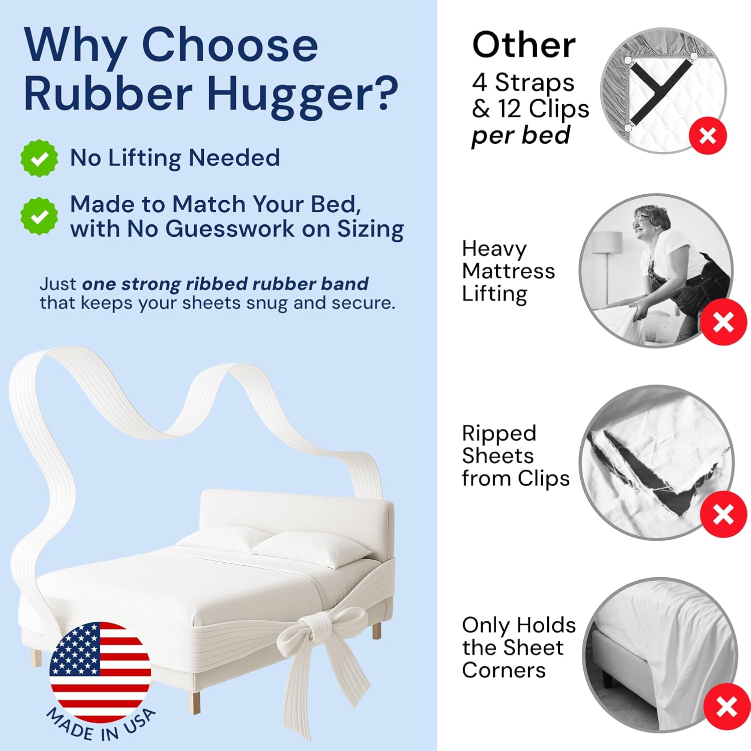 Enhanced Sleep with Rubber Hugger: Expertise a restful evening’s sleep with the Rubber Hugger elastic sheet holders, which maintain sheets agency and tight to forestall tangles and wrinkles. This patented, ribbed rubber band mattress accent simplifies your routine by providing a comfortable match with out the necessity for mattress sheet clips