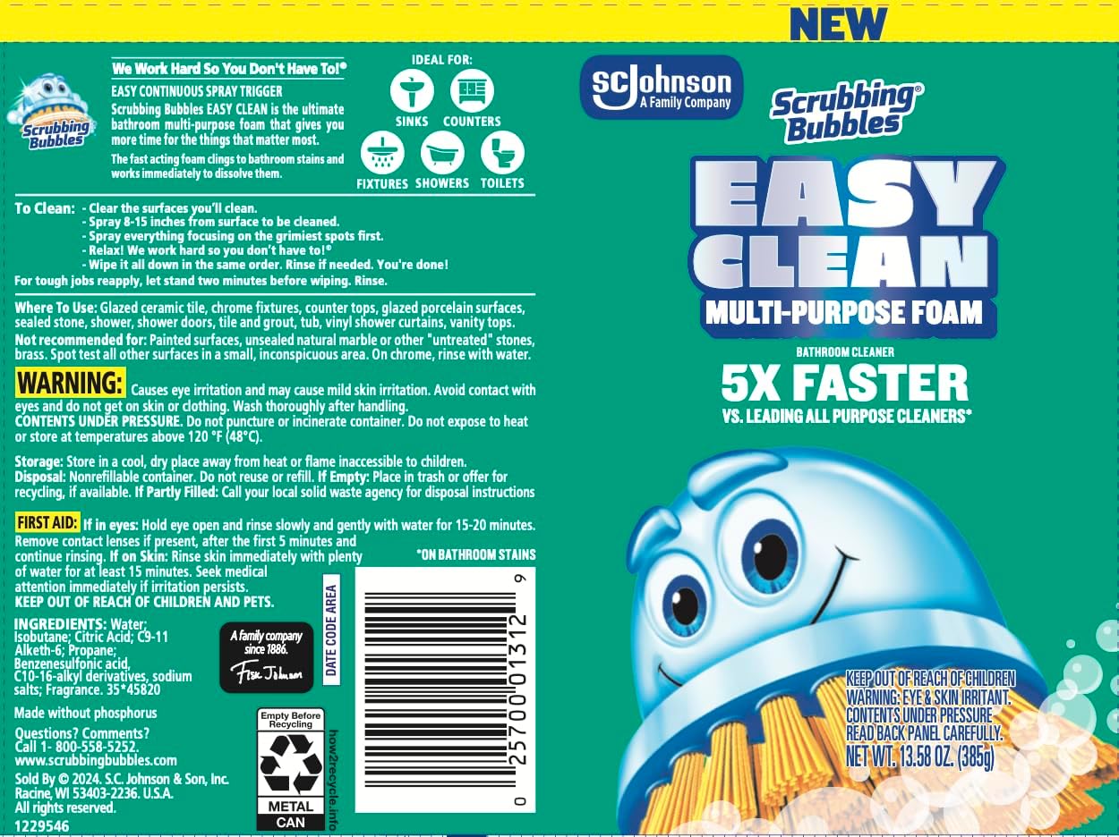 Make cleansing your rest room the simplest job on the earth. The brand new Scrubbing Bubbles Simple Clear Multi-Function Cleaner delivers a robust foam that cuts by means of grime and leaves surfaces glowing. With its steady spray aerosol can, this Simple Clear foam clings to nooks and crannies and cleans 5X sooner*, dissolving stains in seconds. Say goodbye to infinite scrubbing and watch powerful cleaning soap scum and limescale disappear earlier than your eyes. The contemporary scent leaves your rest room smelling superb, as a result of no one needs to bathe in a chemical manufacturing facility. Scrubbing Bubbles rest room cleaner is ideal for all of your rest room surfaces, together with showers, sinks, fixtures and bathrooms. *vs. main all function cleaners on limescale