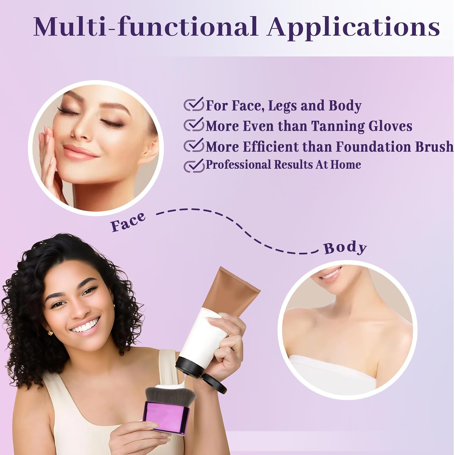 Self Tanner Brush for Body & Face – Kabuki Makeup Brush for Self-Tanner,Tanning Mousse,Foundation & Bronzer | Streak-Free Application,Super Soft Bristles,Professional Tanning & Body Makeup Tool