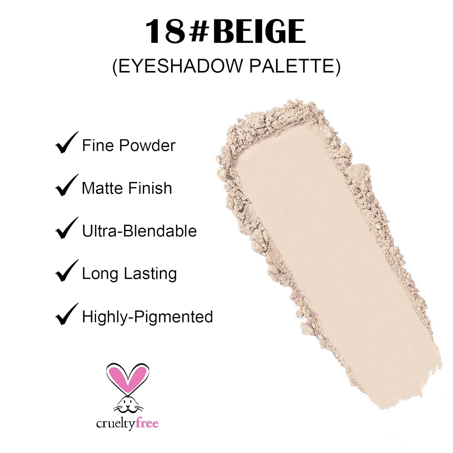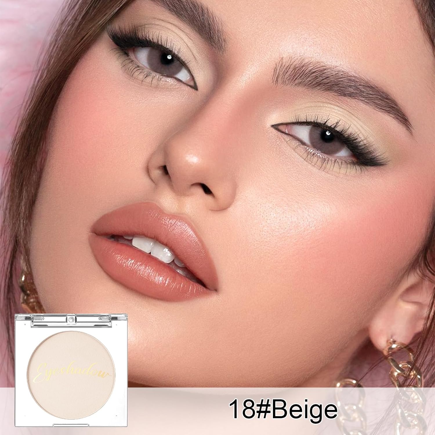 Single Beige Matte Eyeshadow Palette, Velvet Eye Shadow Compact Powder Primer Base Makeup, Ultra-Blendable, Fine Smooth Powder, Waterproof, Long-Lasting, 18#Beige