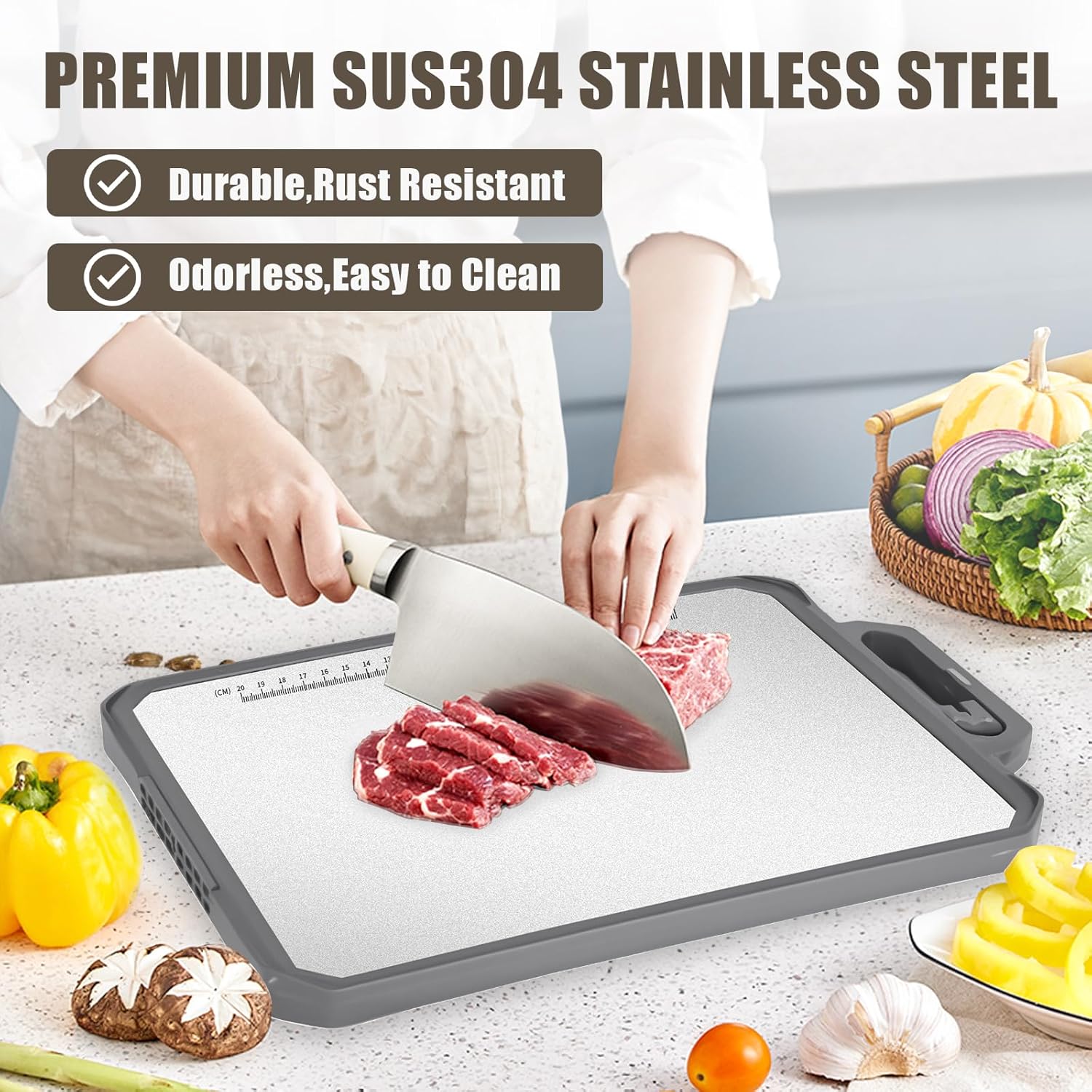 GENXONE DOUBLE SIDED STAINLESS STEEL CUTTING BOARD FOR KITCHEN