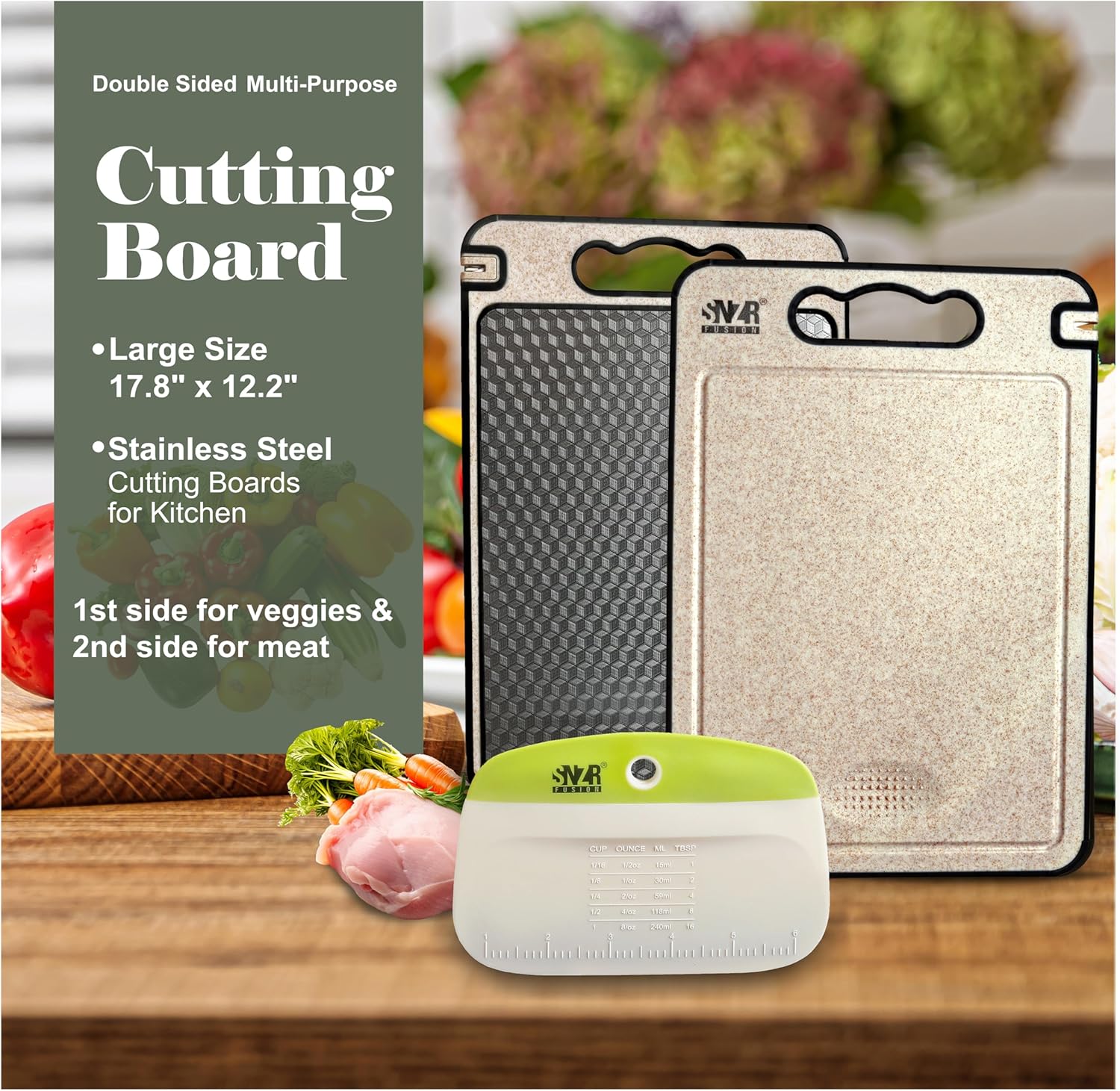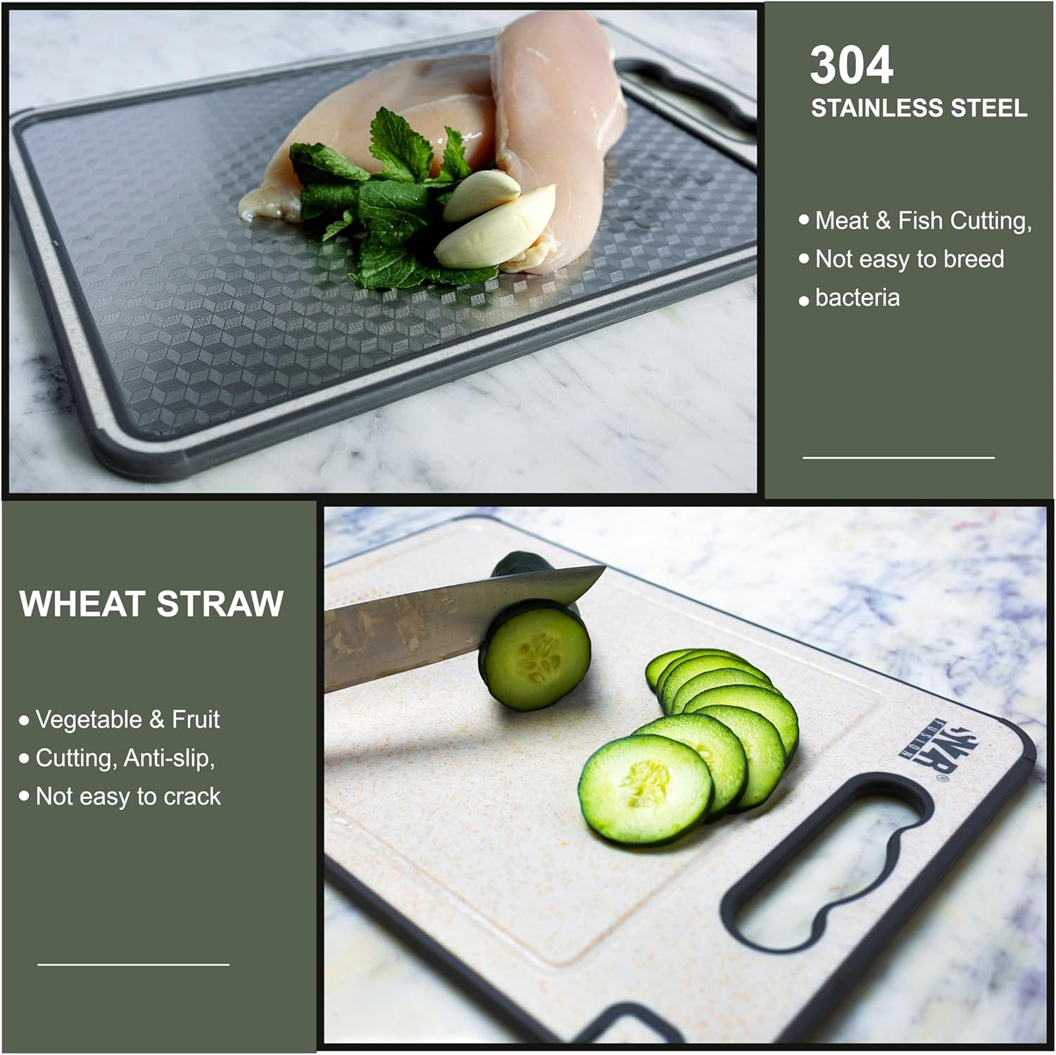 𝐃𝐎𝐔𝐁𝐋𝐄-𝐒𝐈𝐃𝐄𝐃 𝐕𝐄𝐑𝐒𝐀𝐓𝐈𝐋𝐈𝐓𝐘- Maximize your cooking effectivity with our reducing board with two sides: one chrome steel for meats and one plastic wheat straw for greens. Our chopping board is ideal for all of your meal prep wants!