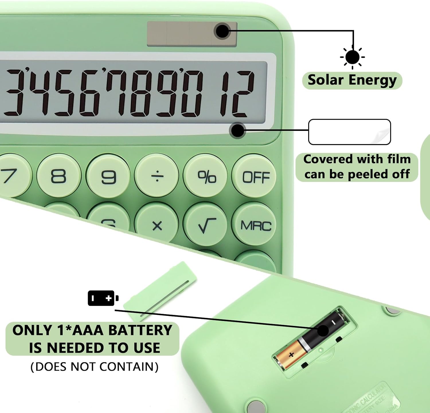 Twin Energy Calculator – Electrical digital Gradient Inexperienced calculator has twin electrical drive, mild power and 1*AAA battery(not included); It will probably change the facility mode based on the atmosphere, which is extra sturdy and extra handy. The photo voltaic panel, so long as you employ it in a lit atmosphere, will energy up the calculator totally.