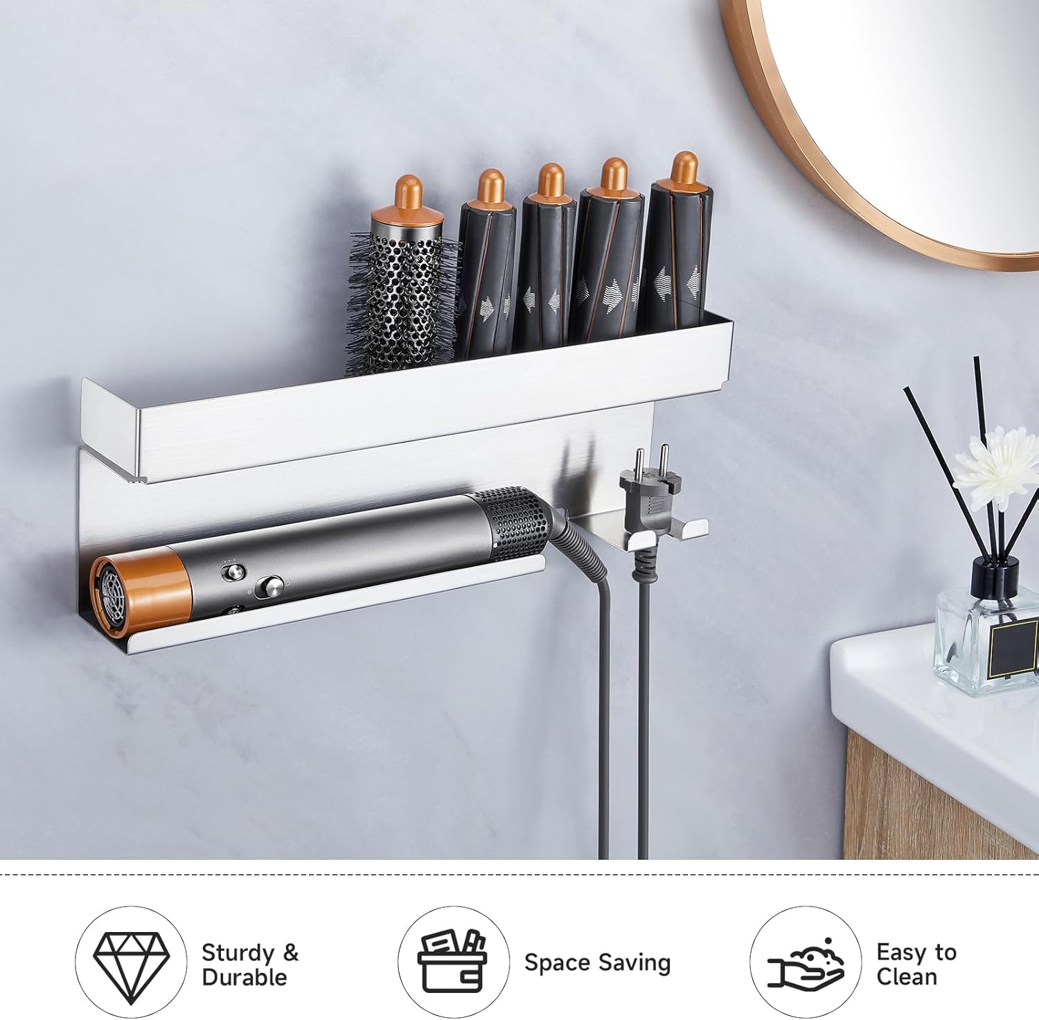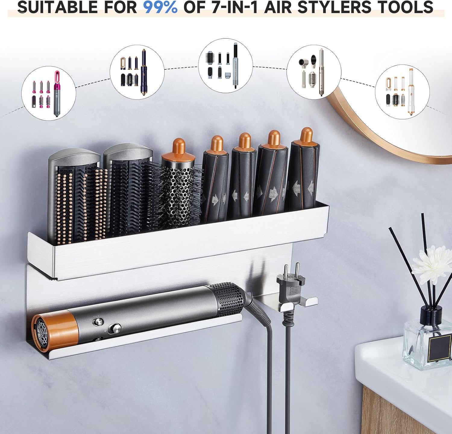 SPACE SAVING: Wall mount storage rack for curling iron attachments and full styler. With compact design, splendid for use for toilet, bed room, hair salon, lodge, caravan and many others. Say goodbye to litter within the grooming area
