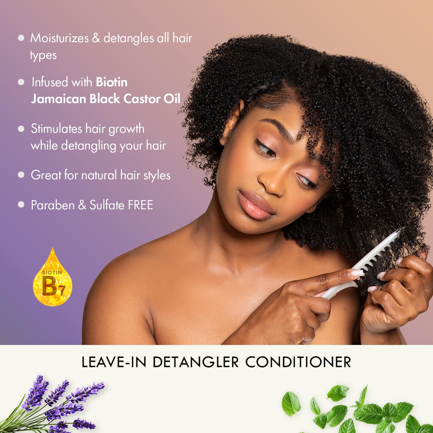 Sunny Isle Lavender Mint Hair and Strong Roots Leave-In Detangler Conditioning Treatment 8oz | Biotin and Jamaican Black Castor Oil | Paraben and Sulfate Free | Double Growth Formula