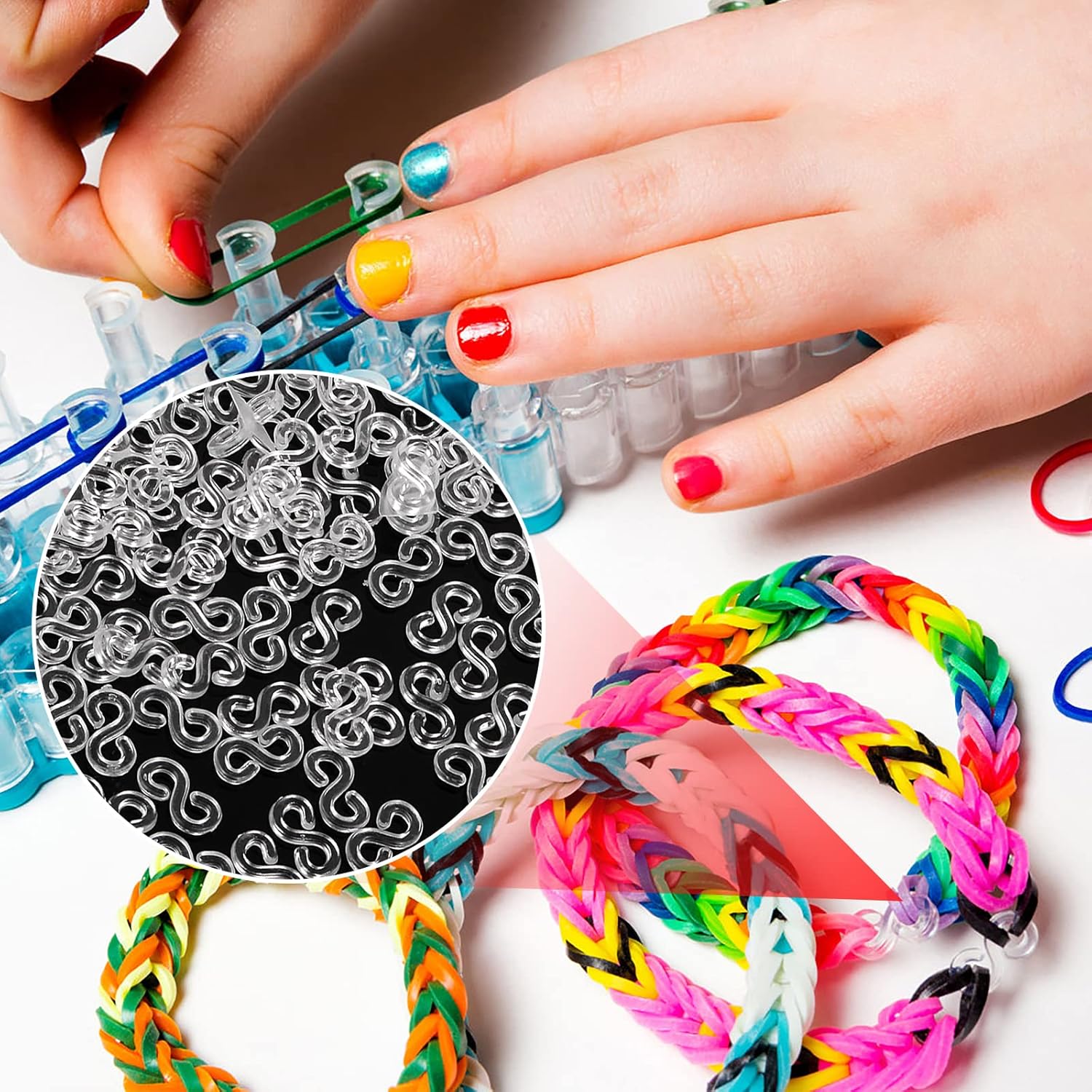 S Clips for Loom Bands: With inventive and imaginative rubber band bracelet s clips, you may make hooks rubber band bracelets with your loved ones or associates, equivalent to bracelets, necklaces, rings, pendants, and different decorations you may think about, take pleasure in limitless enjoyable making rubber band bracelet hooks clasps.