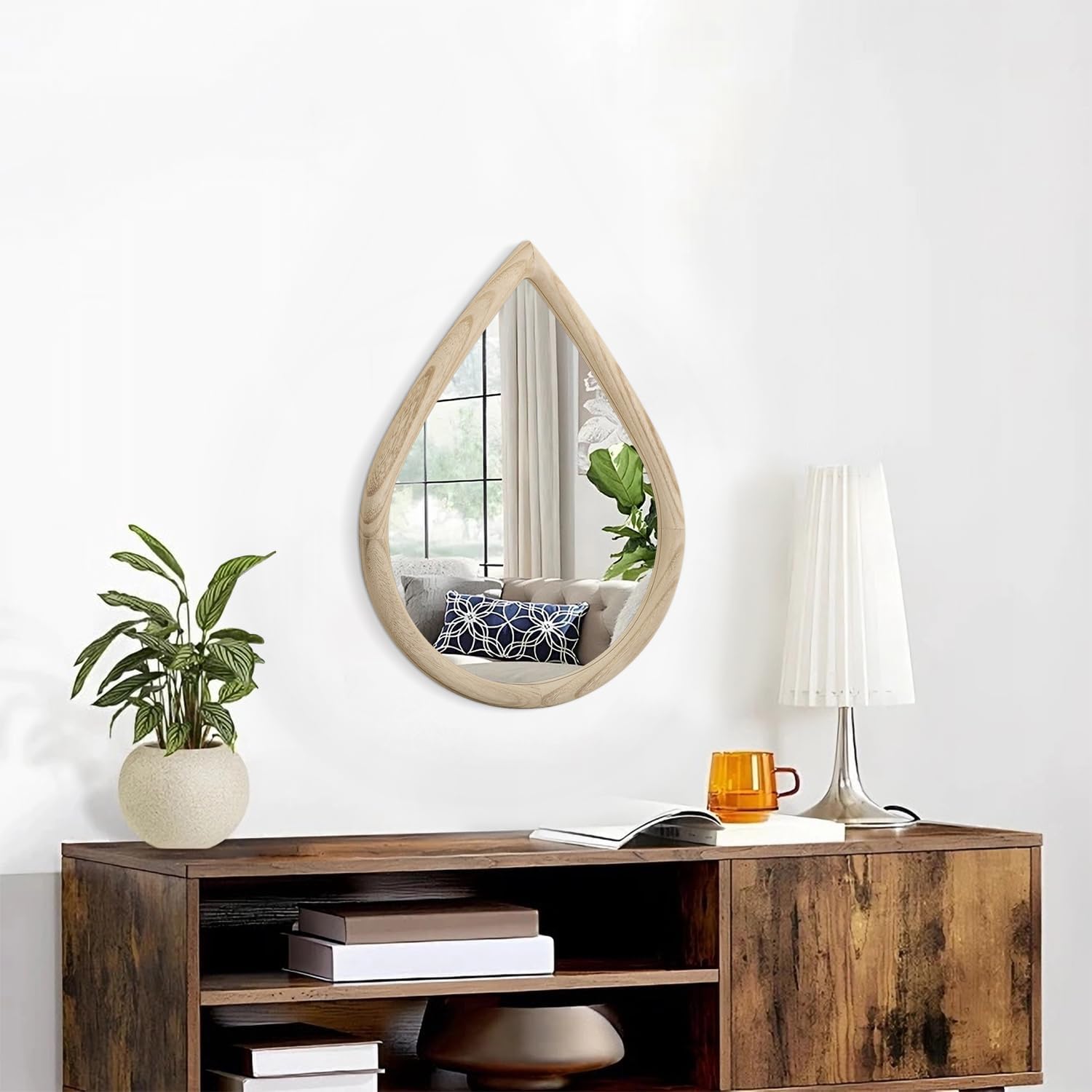 Teardrop Mirrors with Natural Wood Framed Small Wall Hanging Mirror Irregular Mirrors for Wall Decorative Farmhouse Bedroom Bathroom Entryway Mirrors