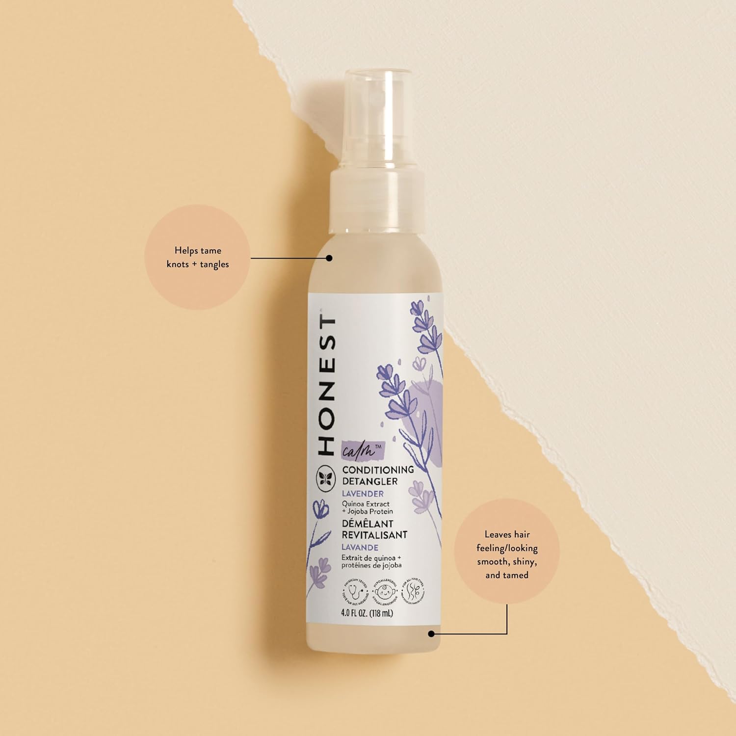 The Honest Company Lavender Calm 2-in-1 Cleansing Shampoo + Body Wash + Conditioning Detangler Bundle | Naturally Derived, Tear Free, Hypoallergenic | 10 fl oz, 4 fl oz