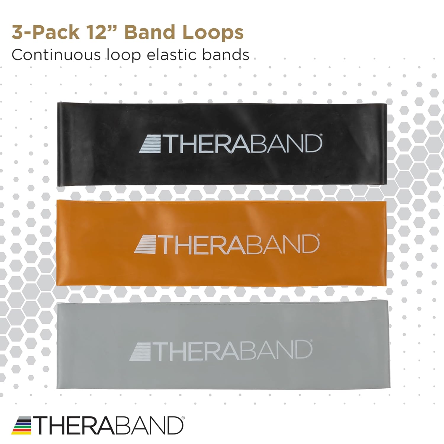 THERABAND Professional Resistance Band Loops Durable Resistance for Strength and Flexibility Exercises, Pilates, Yoga, Stretching, and Physical Therapy, 12″ Continuous Loops (Black, Silver, Gold)