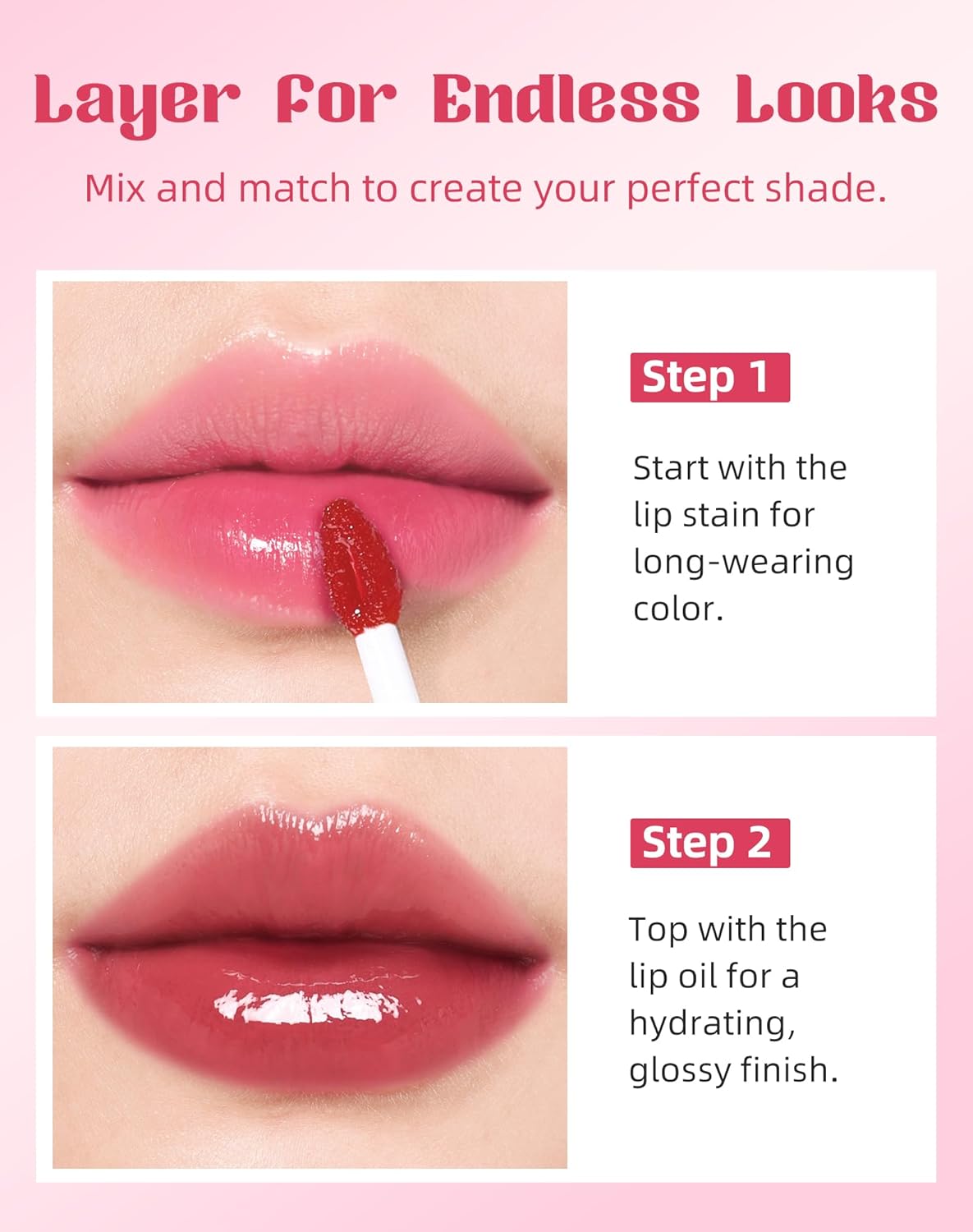 PERFECT PAIRING: Use the lip oil and lip stain collectively for a daring, vibrant coloration or individually for a delicate tint. Excellent for any event or make-up fashion.